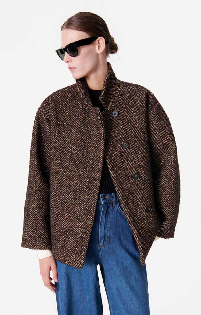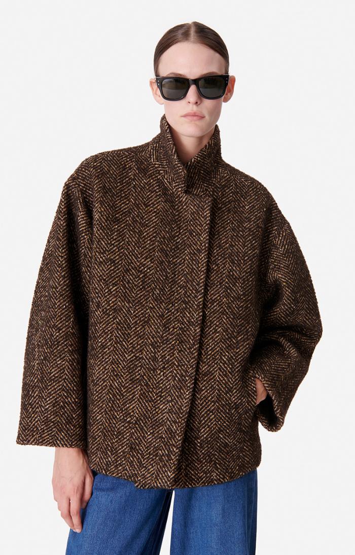 Vanessa Bruno Bentley Coat in Marron | Women’s Tweed-Effect Outerwear