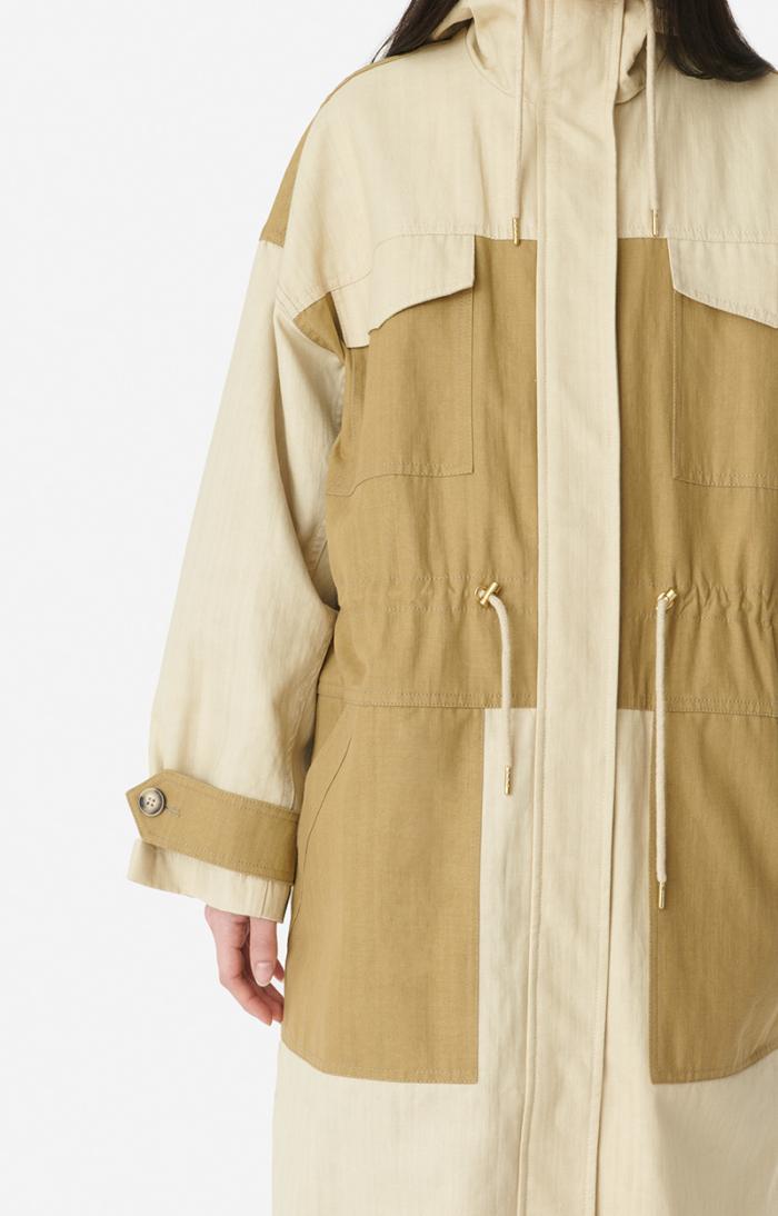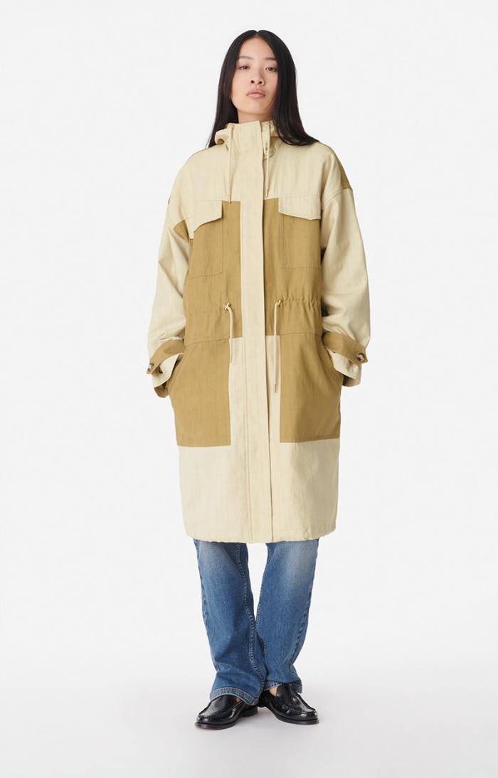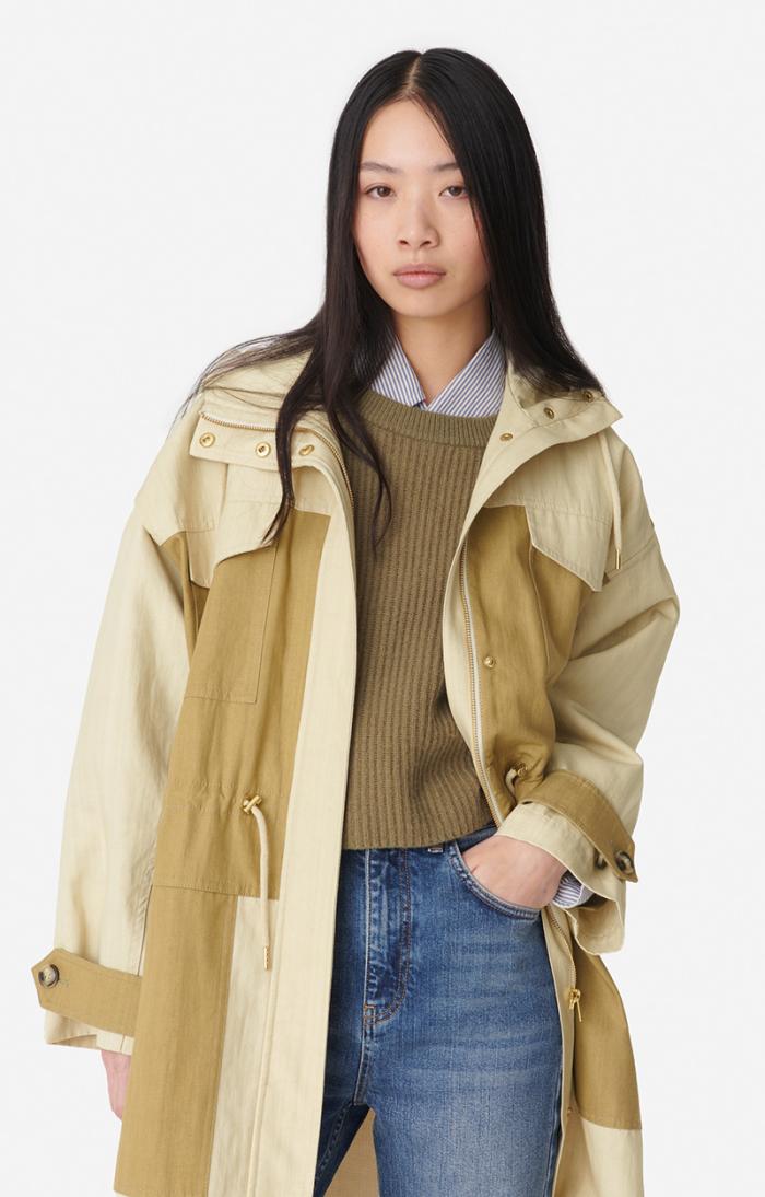 Elevate your autumn-winter wardrobe with the sophisticated Beryle parka, inspired by military styling and crafted for the 2023 season. This versatile mid-season essential combines lightweight comfort with timeless elegance in a striking two-tone khaki and beige color scheme.