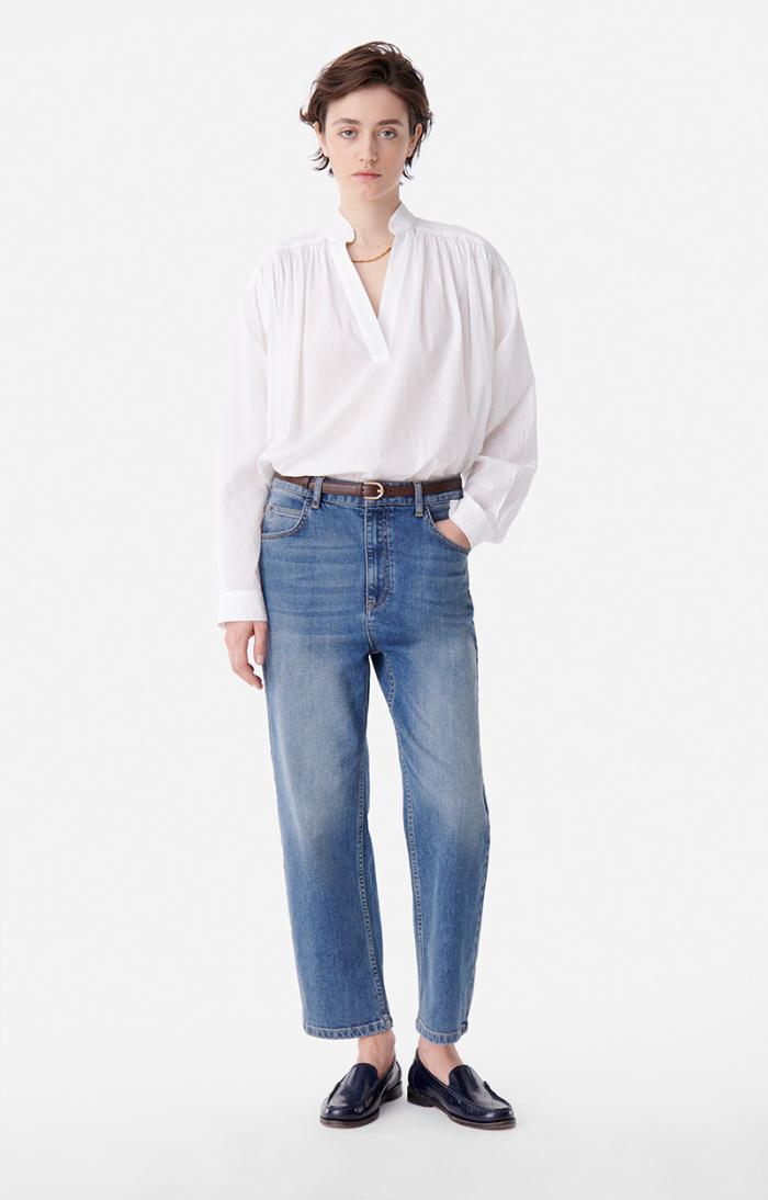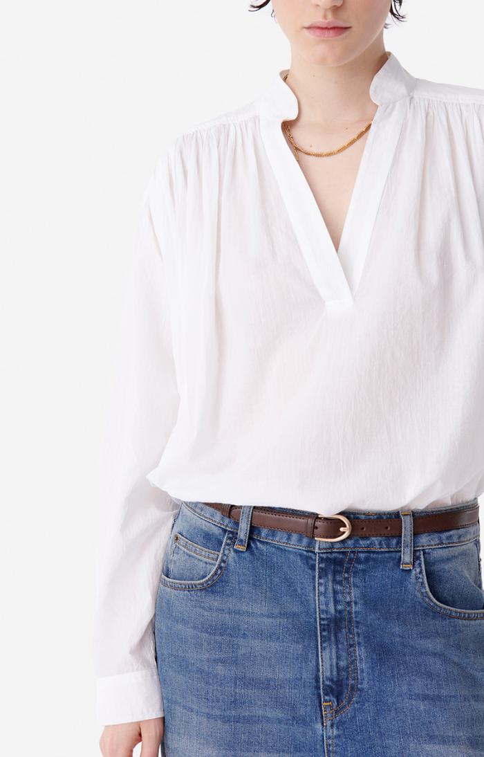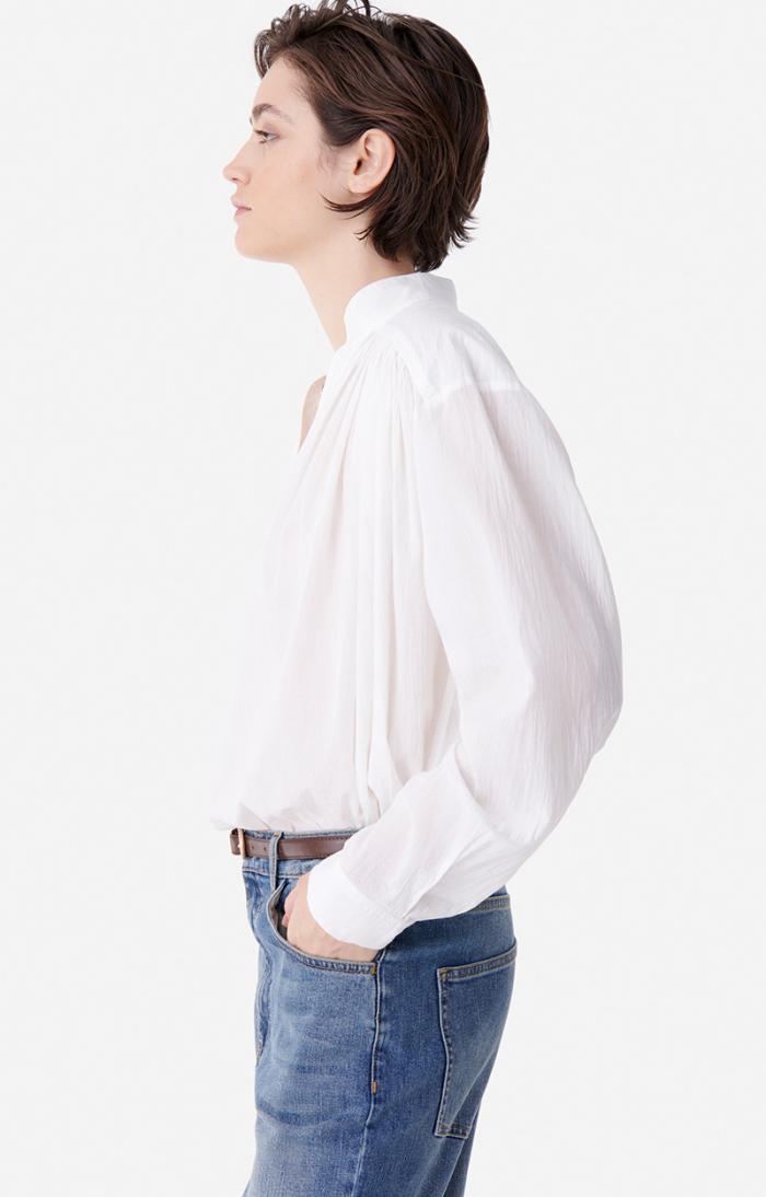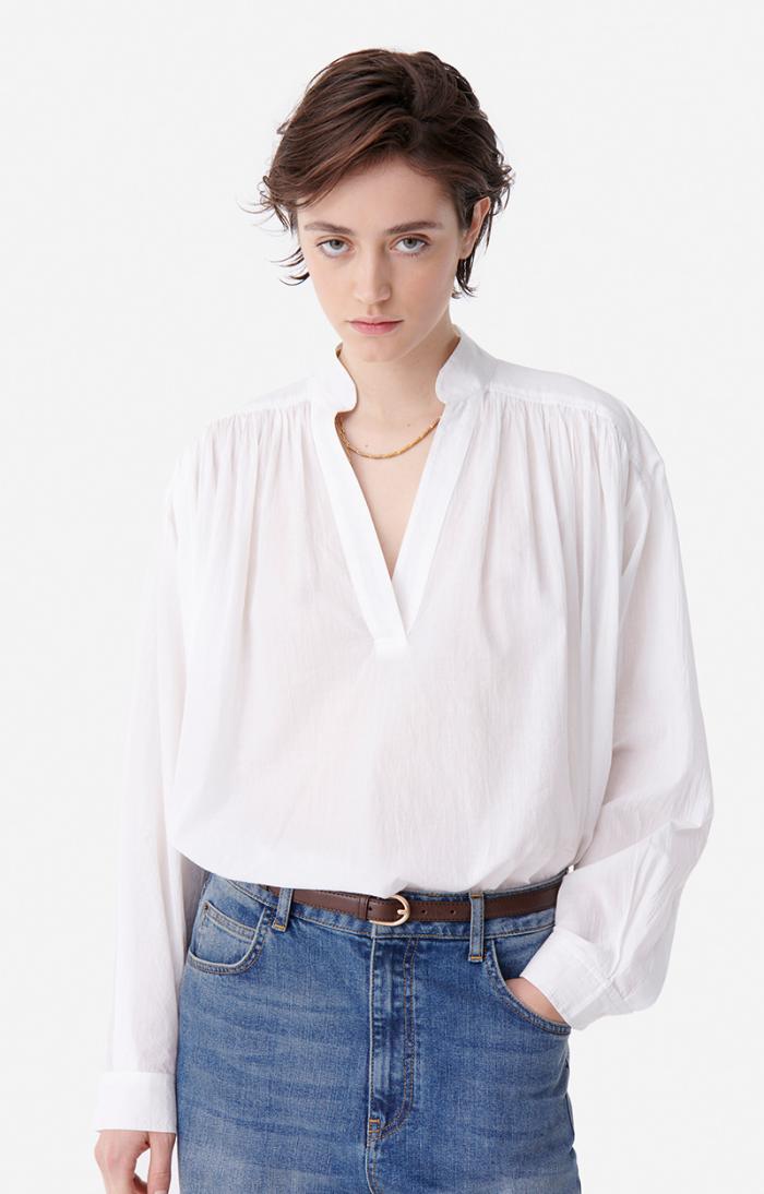 Loose-fitting cotton blouse.