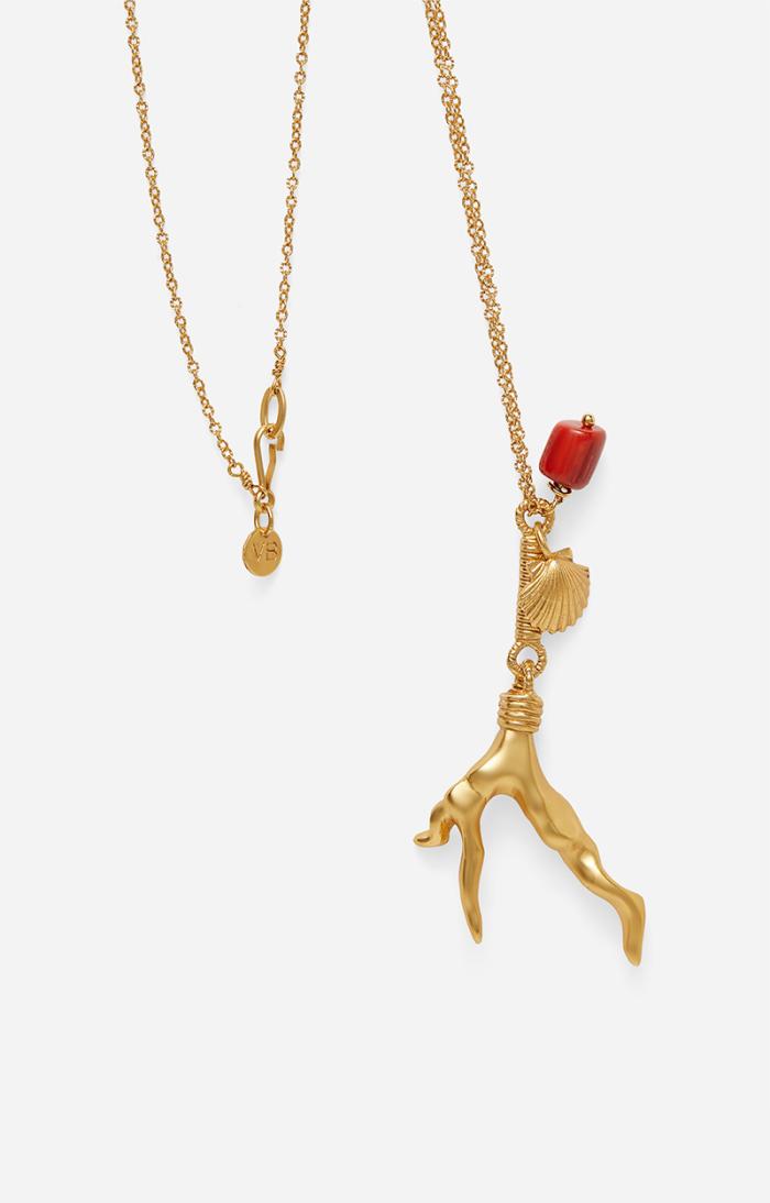 Discover this exquisite necklace, artfully inspired by Mexican craftsmanship and featuring a delicate coral bamboo bead, an elegant coral brass branch accent, and a sophisticated golden pendant. The perfect subtle statement piece to elevate your warm-weather wardrobe.