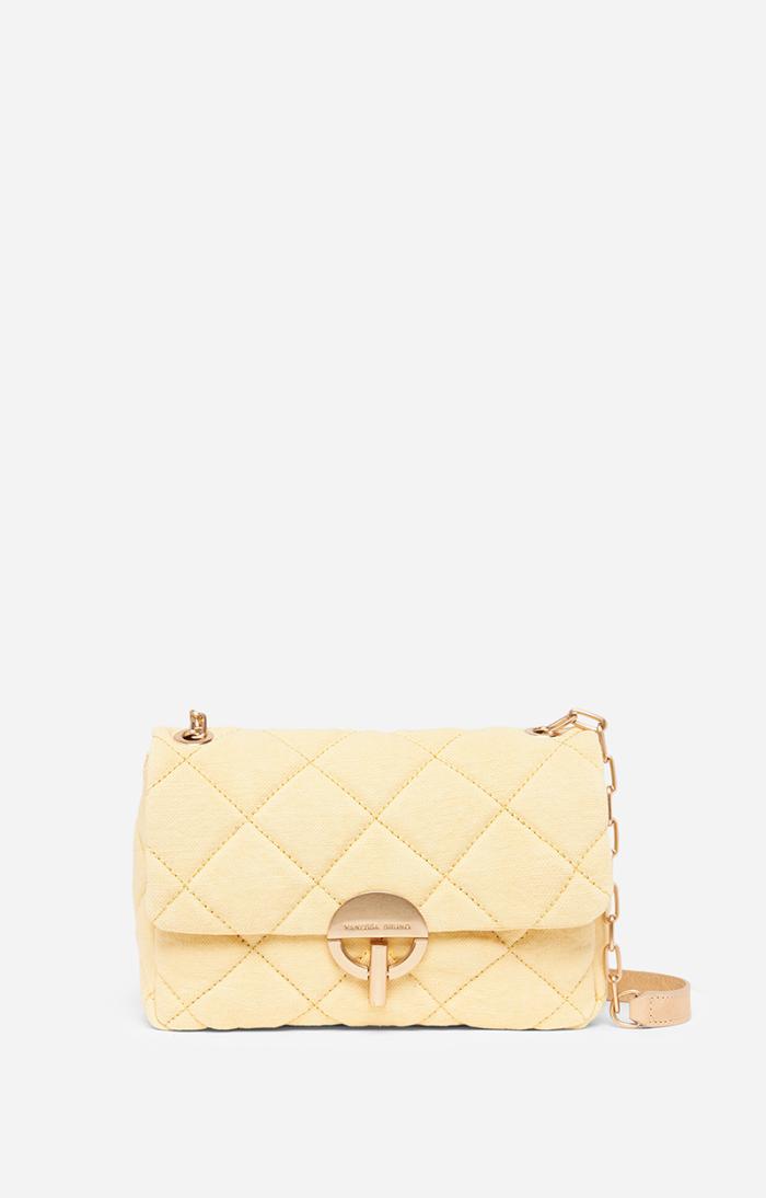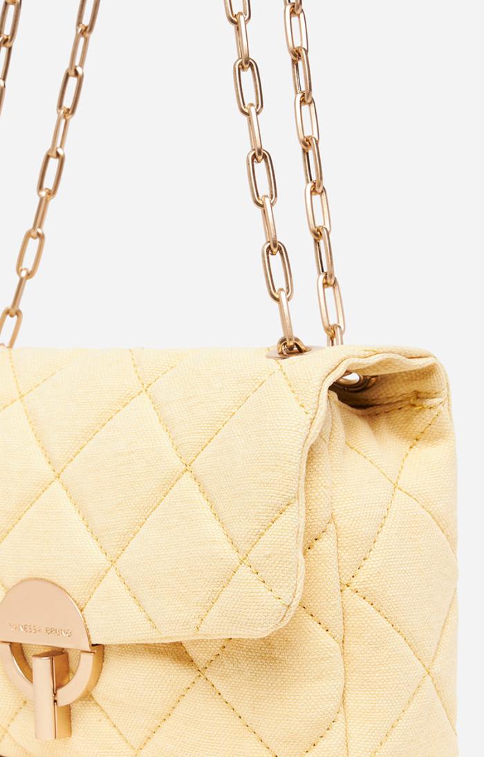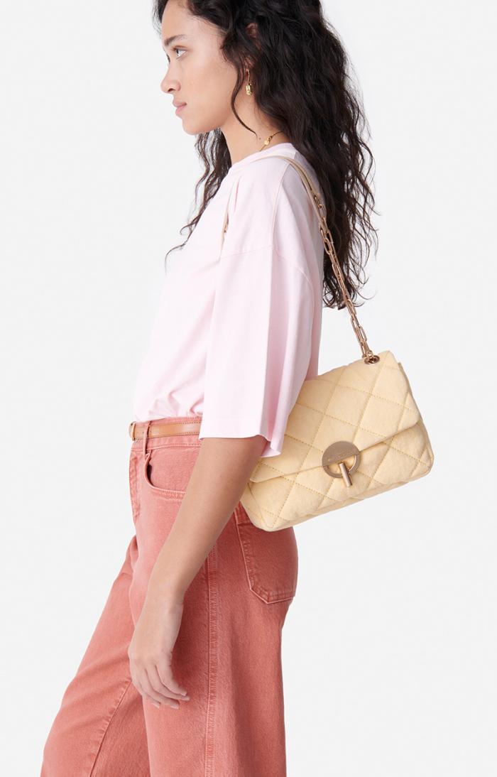 Discover the iconic Vanessa Bruno Moon bag reimagined in premium linen for effortless summer style. This lightweight design features elegant quilting detail and versatile wear options with its dual chain and leather strap.