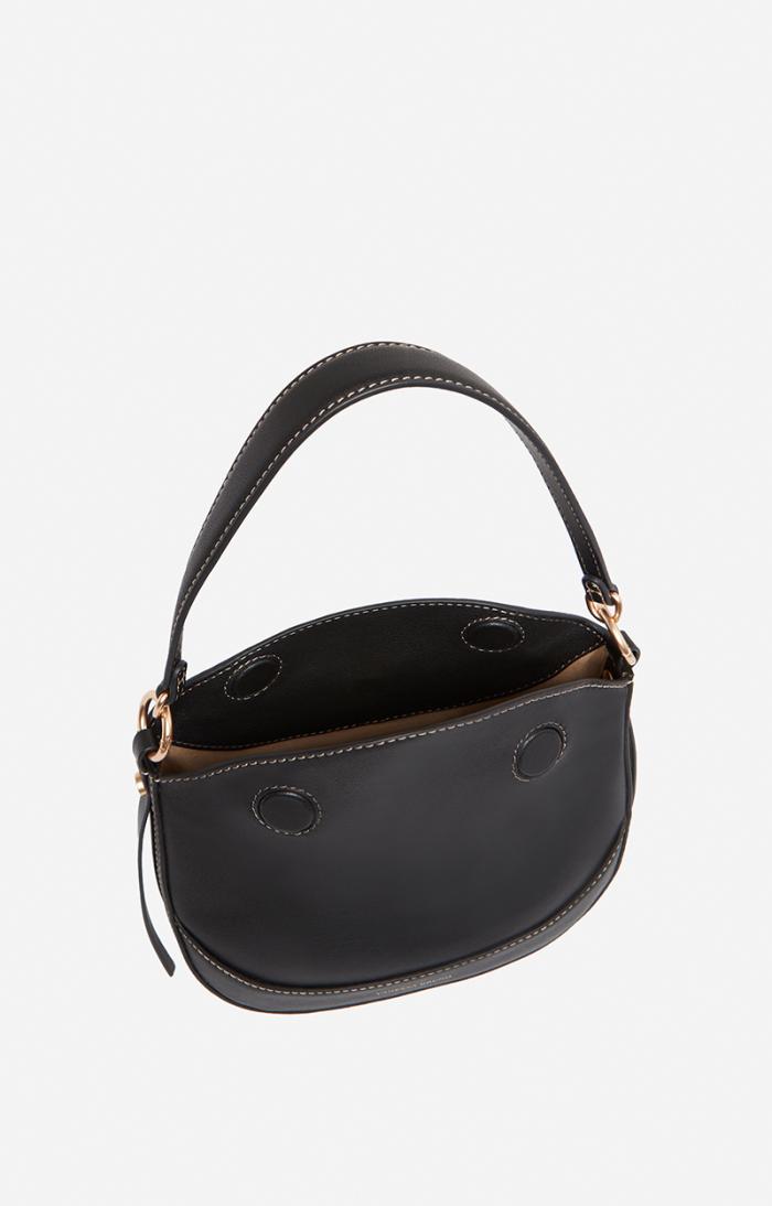 Mini half-moon bag in smooth leather. Carried by hand, crossbody or on the shoulder.