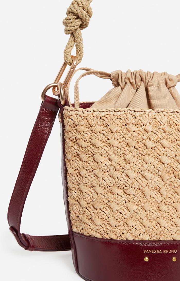 The iconic Vanessa Bruno Holly Mini Bucket Bag gets a fresh seasonal update. This chic compact accessory combines natural raffia with premium leather for a sophisticated statement piece. Fully lined in soft cotton, it effortlessly elevates any outfit with timeless elegance.