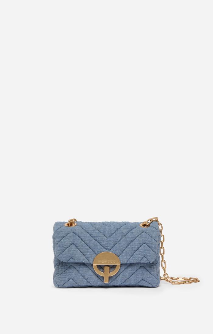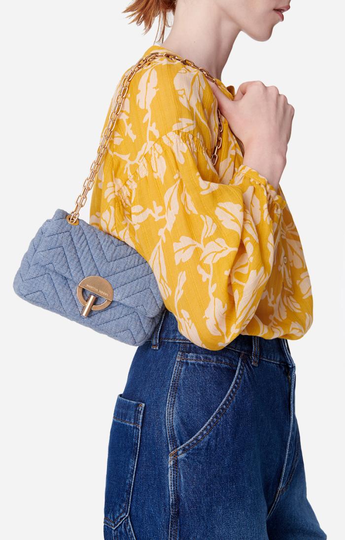 Discover the iconic Nano Moon bag from Vanessa Bruno, completely reimagined for the Autumn/Winter 2023 season. Crafted from premium cotton chambray, this vibrant version features the signature clasp and versatile chain strap that makes it a wardrobe essential.