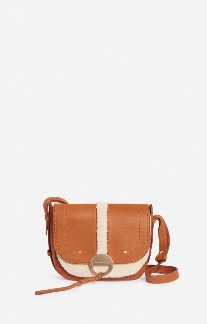 Othilia bag with double flap in nubuck leather and shearling-effect faux fur.