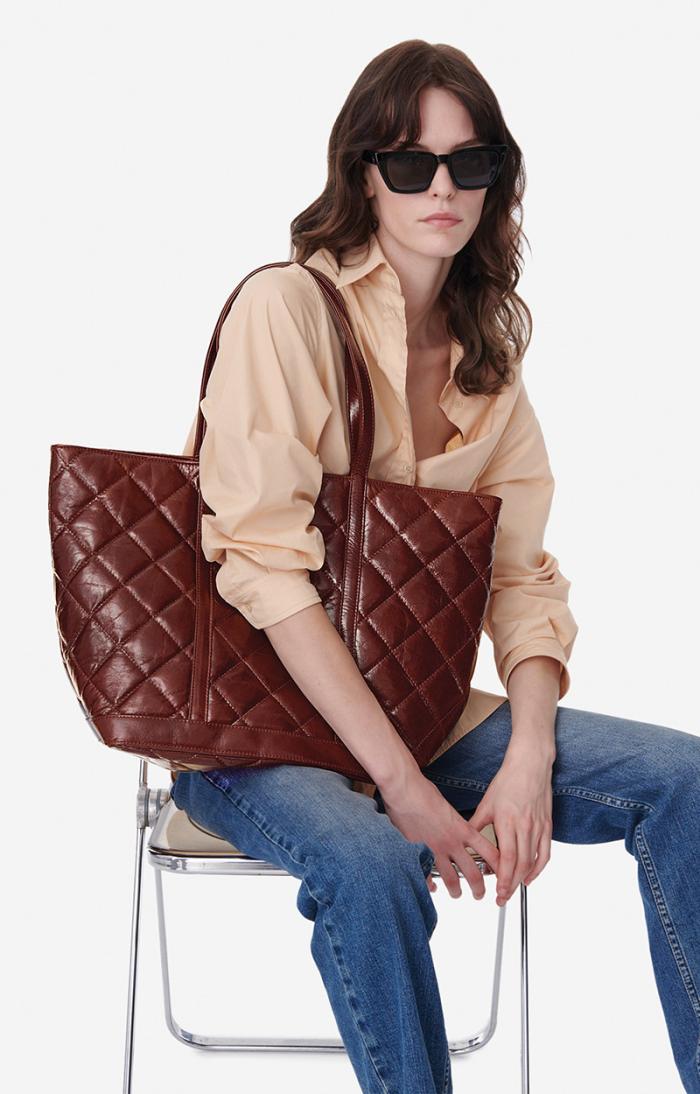 Discover Vanessa Bruno’s reimagined classic this season with the stunning XL Cabas tote. This spacious designer bag effortlessly transitions from busy workdays to spontaneous weekend getaways. Crafted from premium quilted leather, this urban-chic tote features upgraded handles designed for comfortable shoulder wear, even over bulky winter coats.
