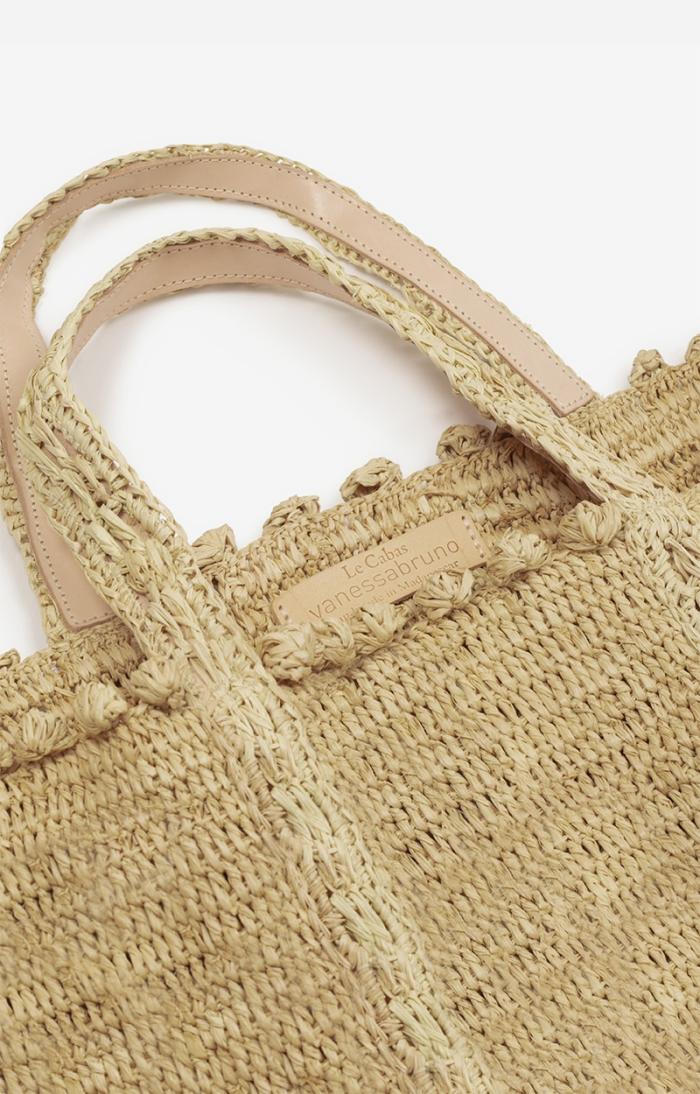 Inside label made of leather, with “Le Cabas Vanessa Bruno Handmade in Madagascar”.