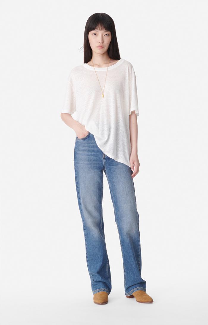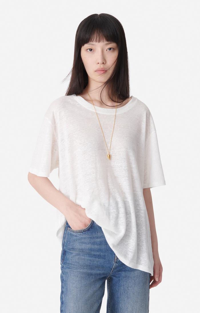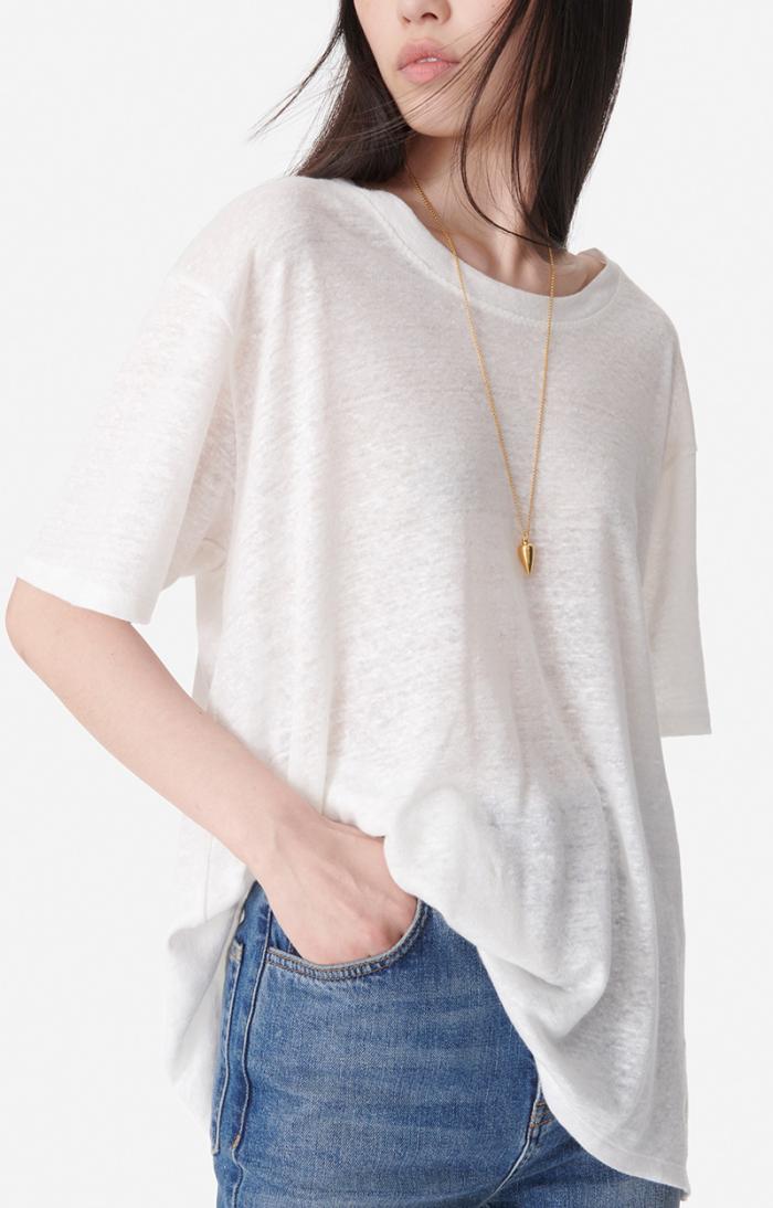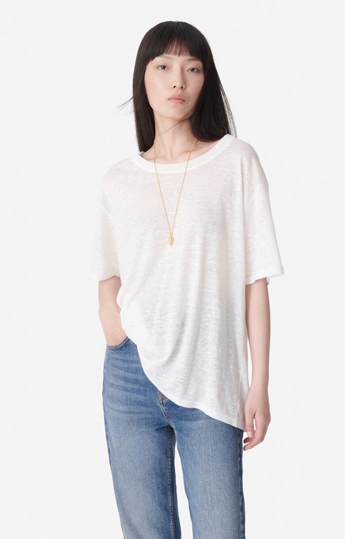 Discover effortless style with our perfectly simple Tasna T-shirt. This slightly oversized design features ultra-light linen fabric that delivers exceptional comfort and sophisticated elegance. The ultimate versatile top that transitions seamlessly from casual jeans to dressed-up skirts for any occasion.