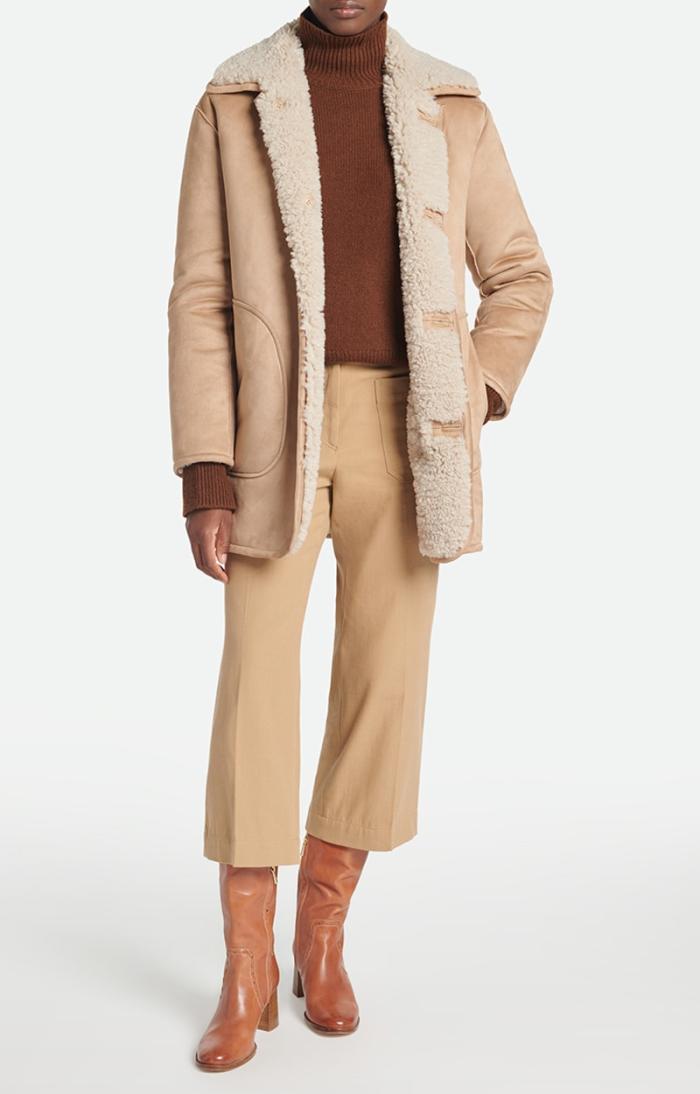 Discover the ultimate in stylish versatility with the Vanna coat, Vanessa Bruno’s standout piece for Autumn/Winter 2022. This reversible design offers two distinct looks in one premium garment, featuring a luxurious faux fur side and a sophisticated suede side. The slightly oversized silhouette combines fashion-forward elegance with practical warmth, making it the perfect transitional piece for changing seasons.