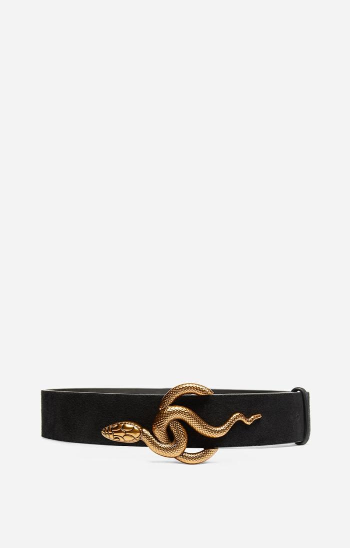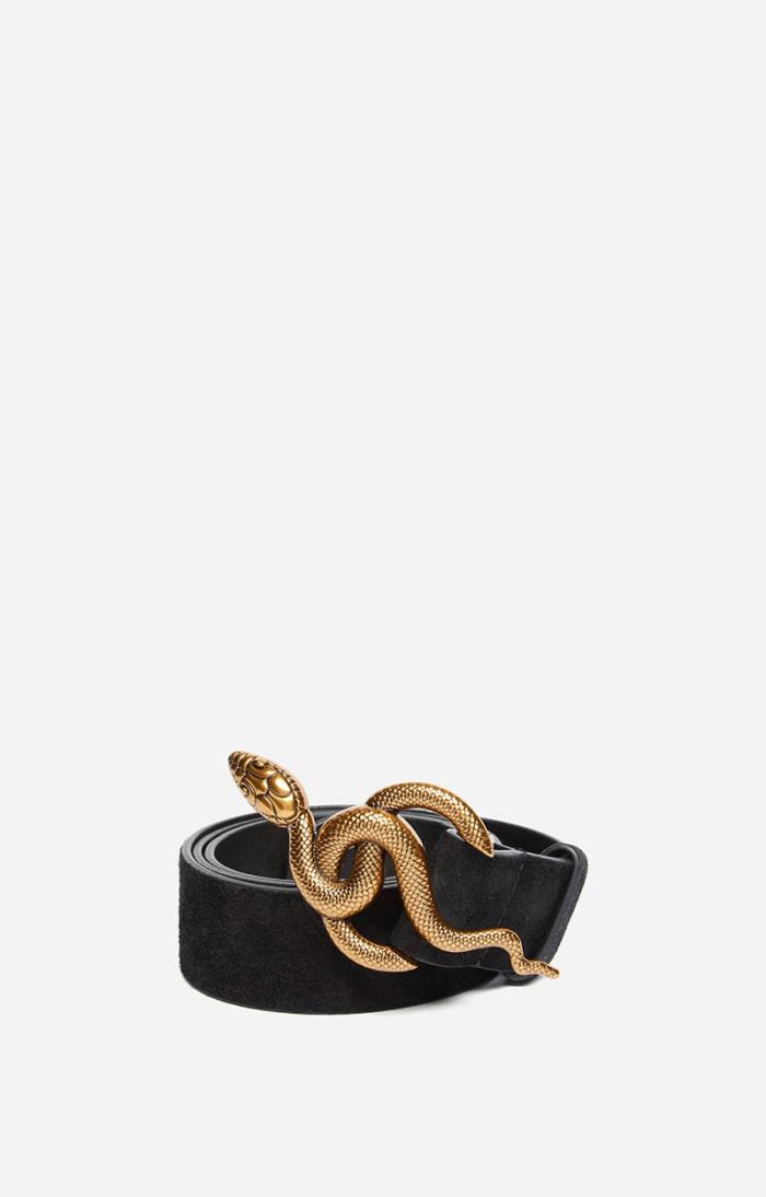 New to the house, the Cleo range is distinguished by its sensual and mysterious identifying sign: the snake. Serving here as a buckle for this fine suede belt, this representation of femininity and power will be the perfect accessory for a unique look.