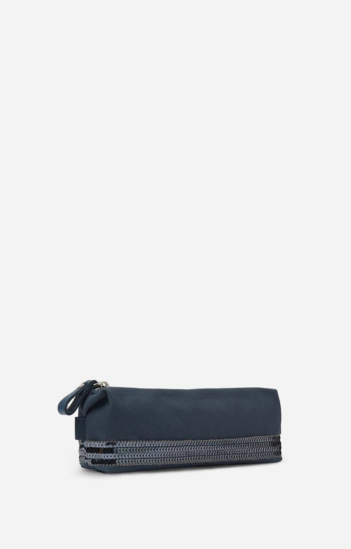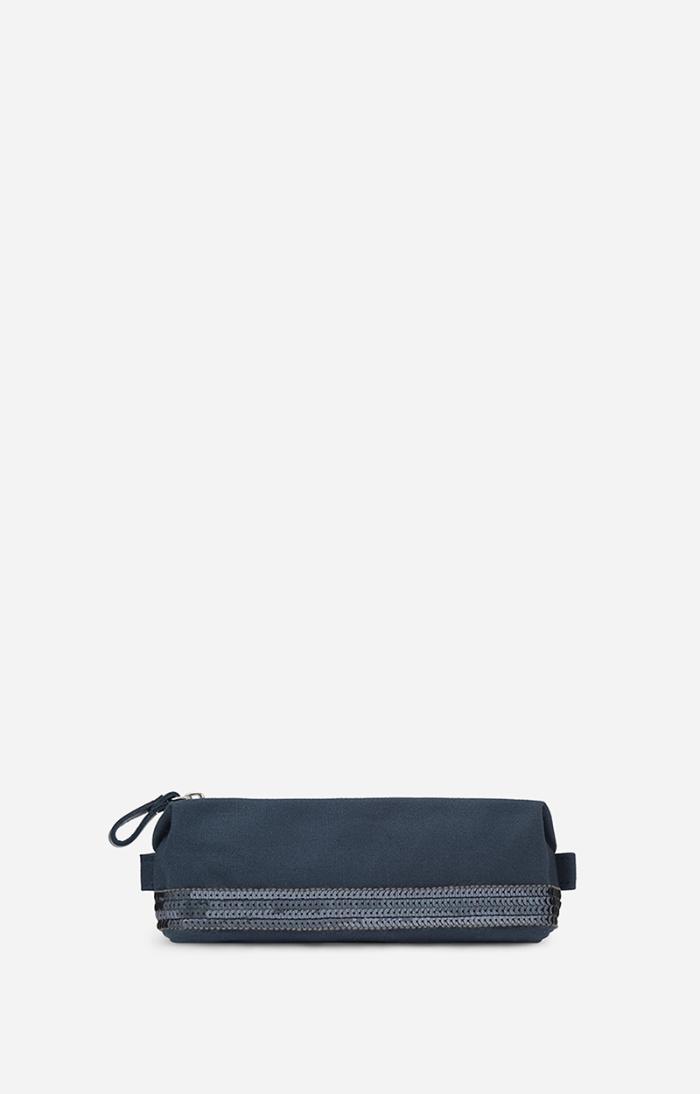 Cotton canvas pencil case highly durable and topped off with sewn sequin stripes.