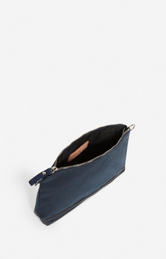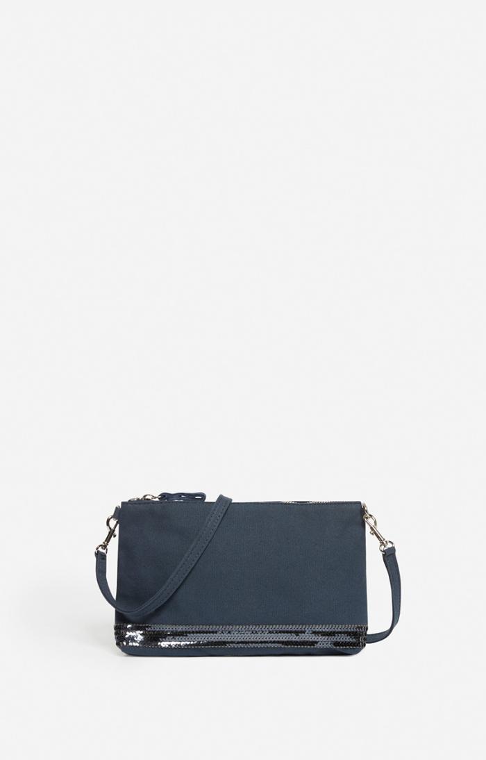 Cotton canvas clutch bag highly durable and topped off with a sequin stripe. The removable and adjustable strap allows it to be carried on the shoulder or crossbody. It can also be carried without the strap like a clutch bag. Inside label of natural vegetable leather hot stamped with “Le Cabas Vanessa Bruno made in France”. The lining is 100% cotton poplin. Leather tab and finishes.