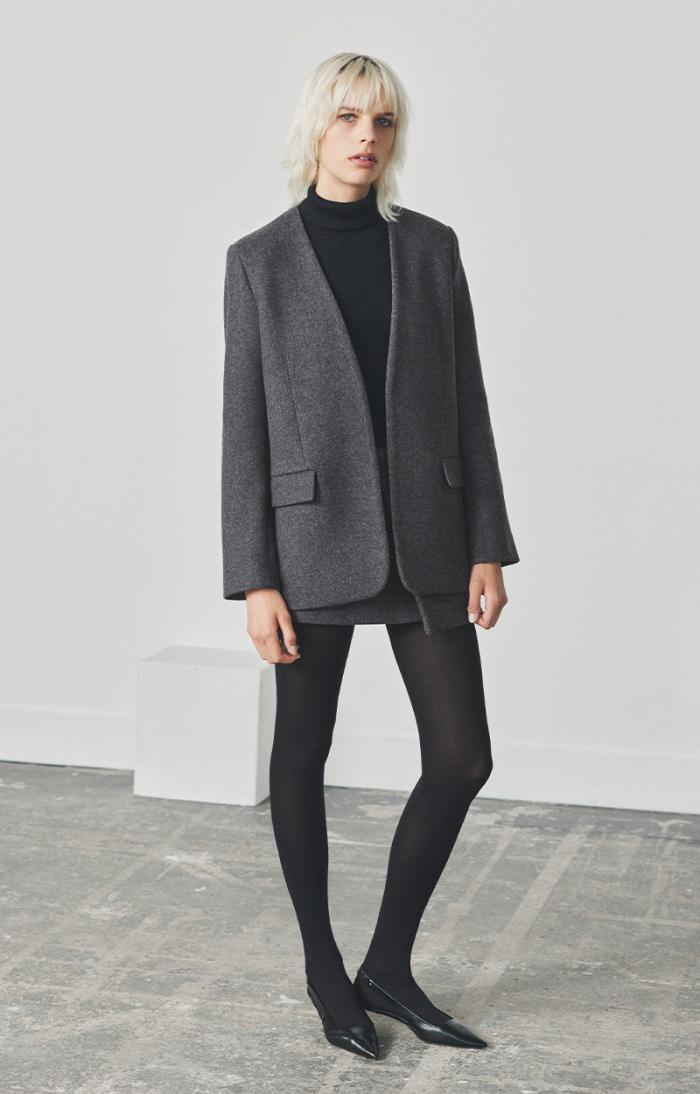 The chic Acia jacket, recently presented in the Spring/Summer 2023 collection, is now available for the Autumn/Winter 2023 season. Made in a wool blend, this jacket has a streamlined shape that stands out for its simplicity and versatility. An essential to treasure for a long time to come, and to wear with a dress or turtle-neck jumper.