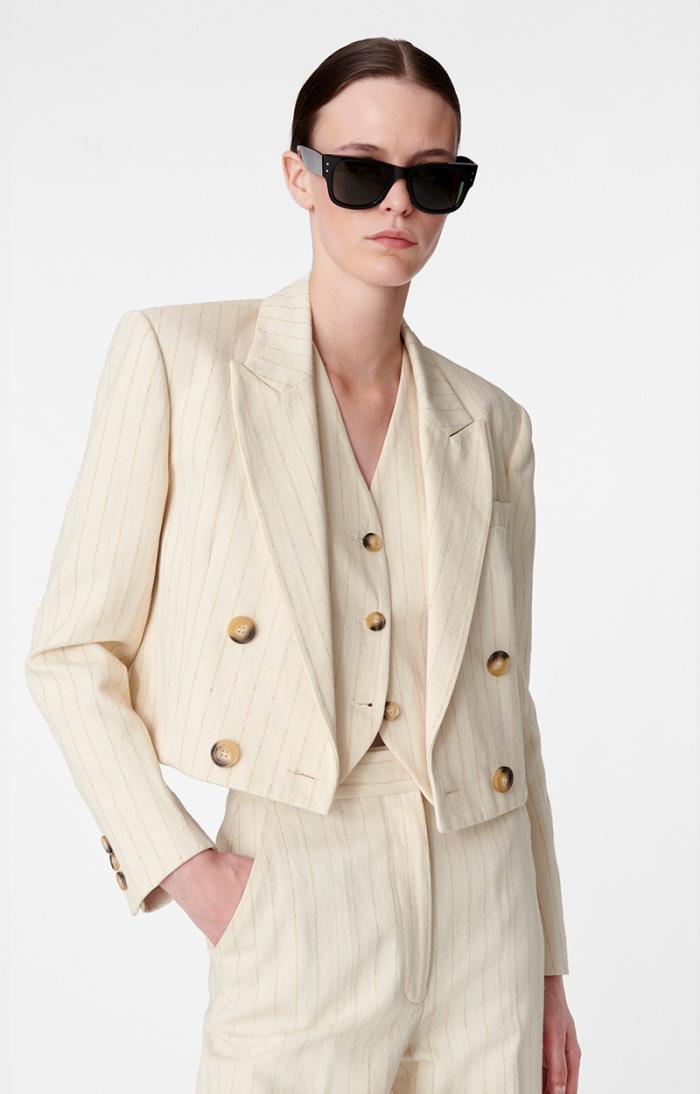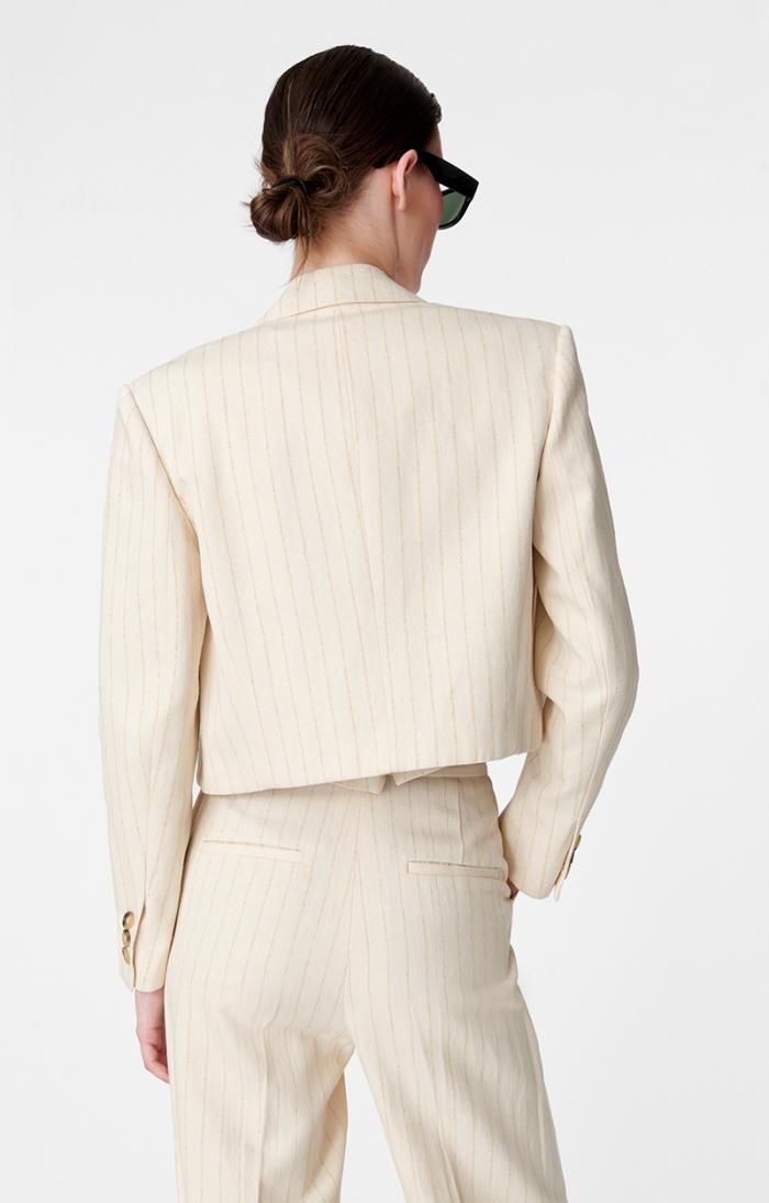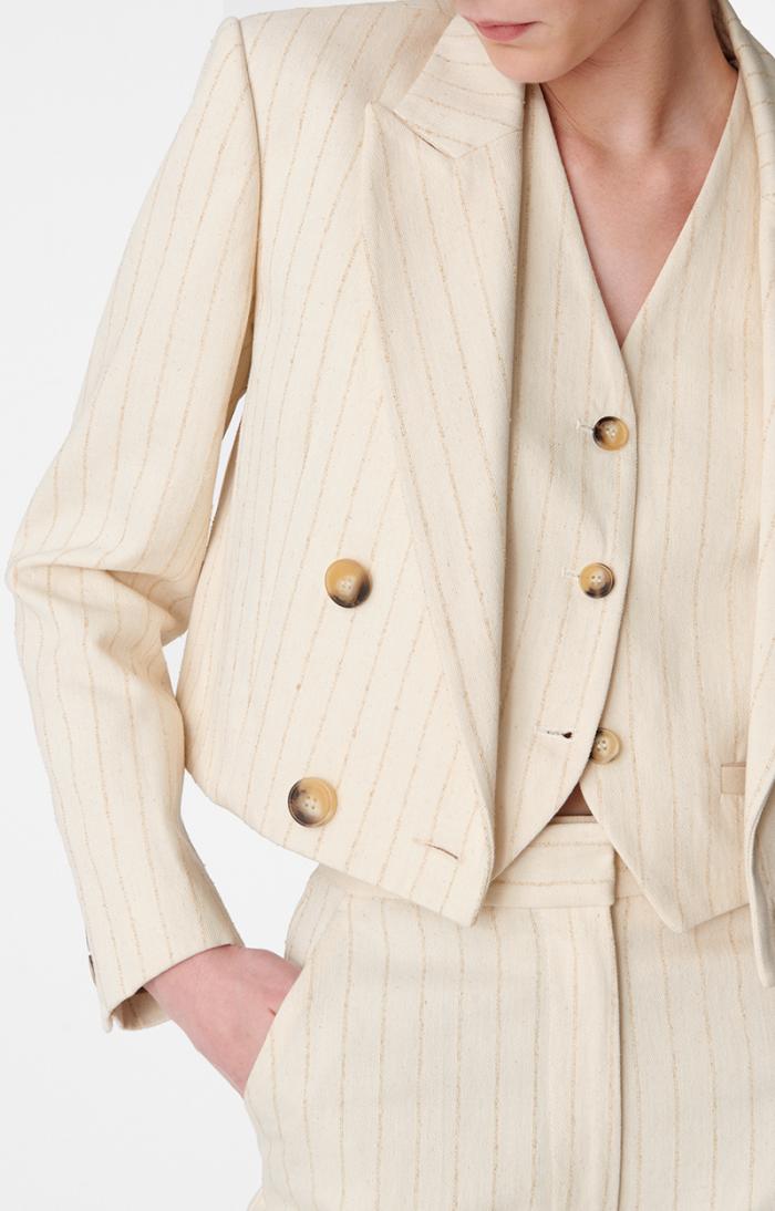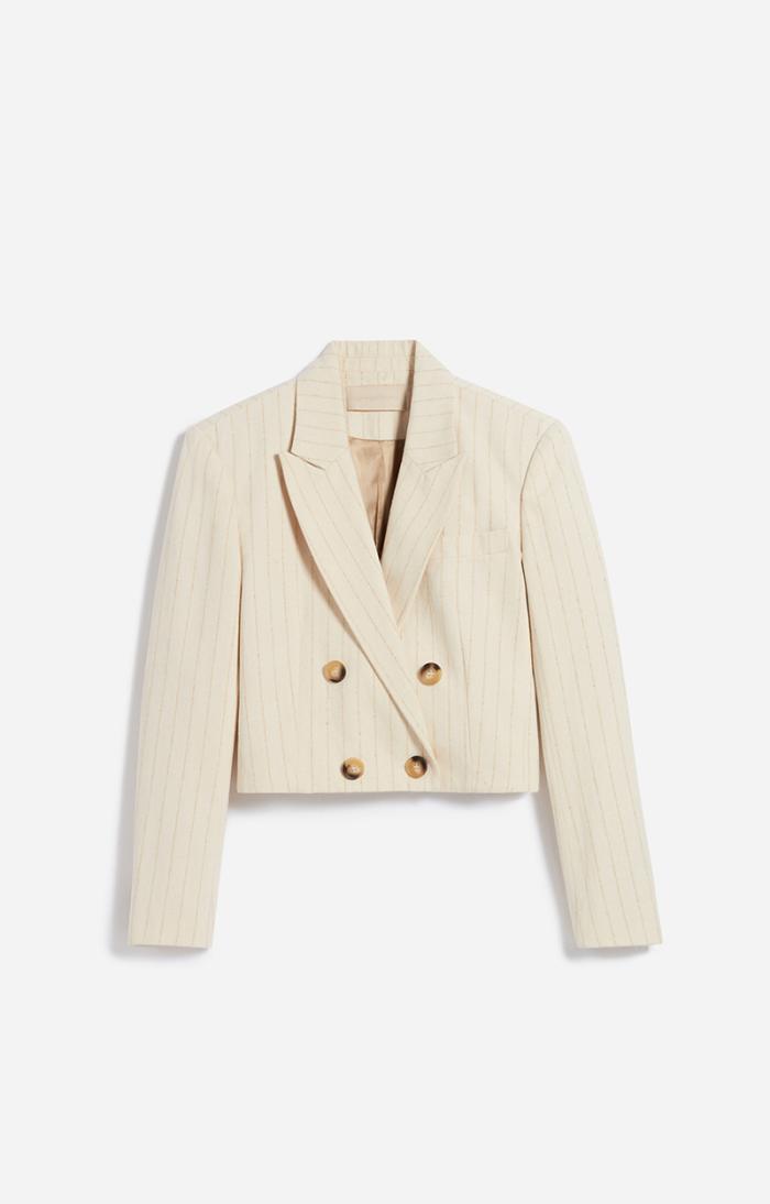 Cropped blazer in striped cotton twill.