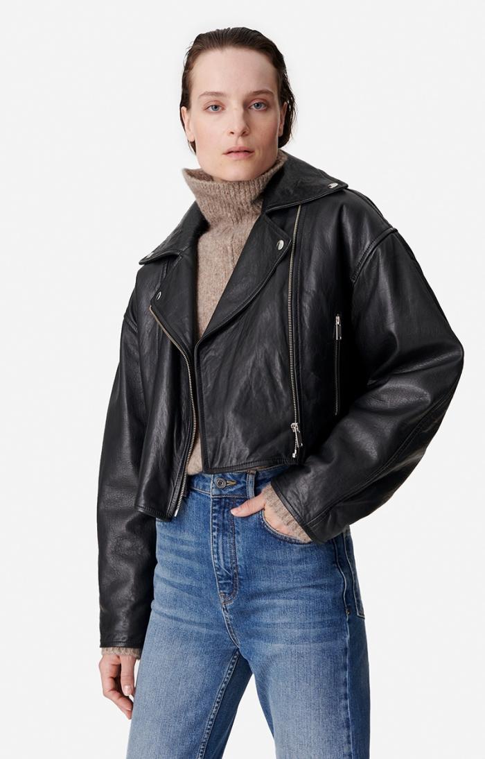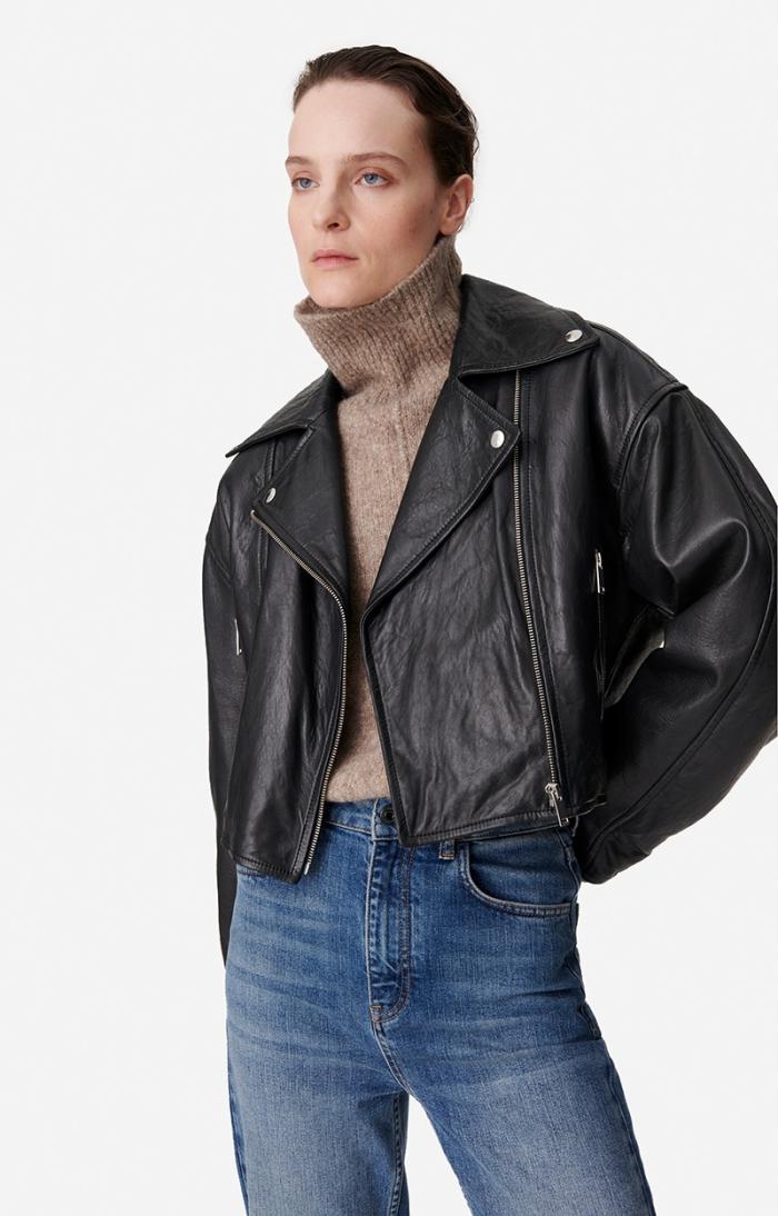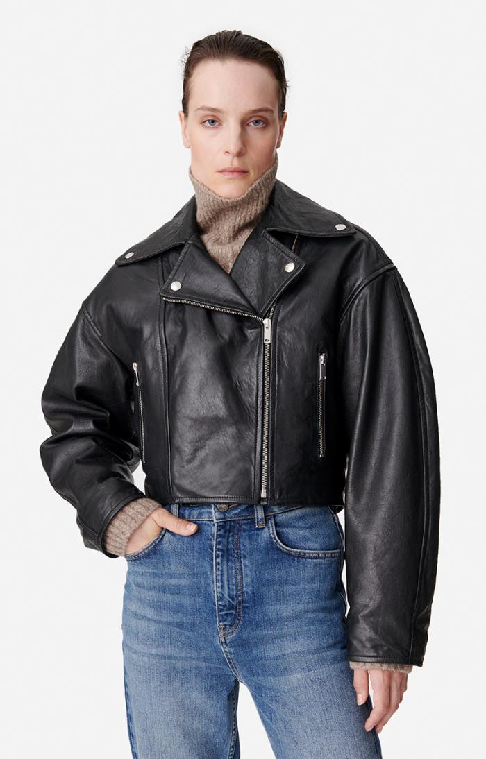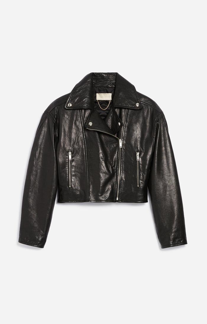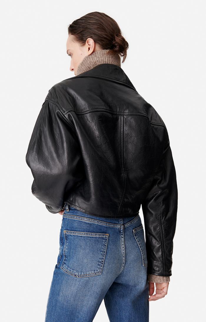 Cropped with a rounded shape, this lambskin leather perfecto jacket is new for Autumn/Winter 2023. With its rounded sleeves, zip detailing and oversized volume, Bless will add a contemporary edge to any look.