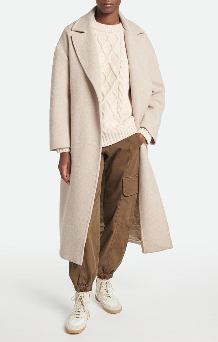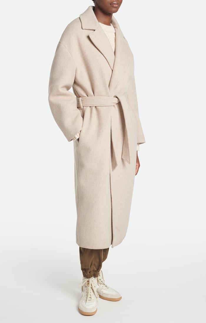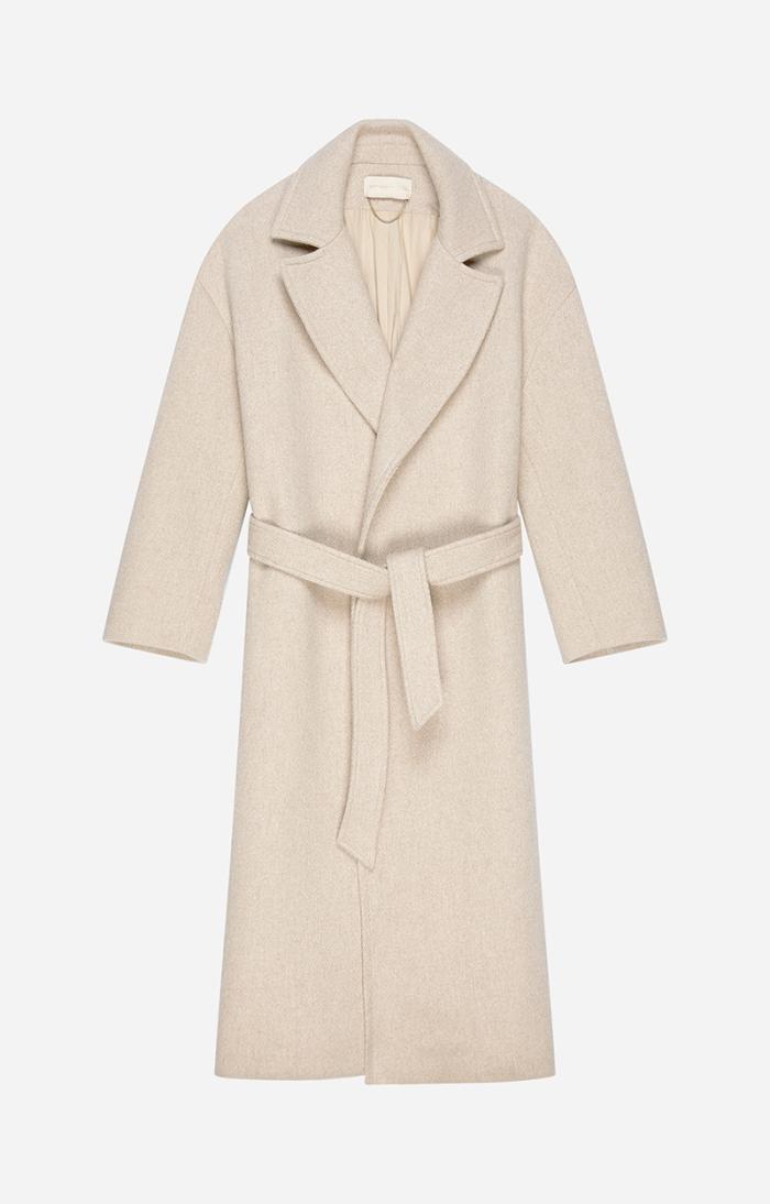 The elegant Sven coat is part of the Vanessa Bruno collections. Made of wool blend, this bathrobe-style item stands out for its oversized line and its natural and soft finish. With no fastening, it is simply equipped with a belt to tie at the waist.