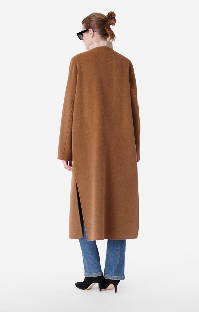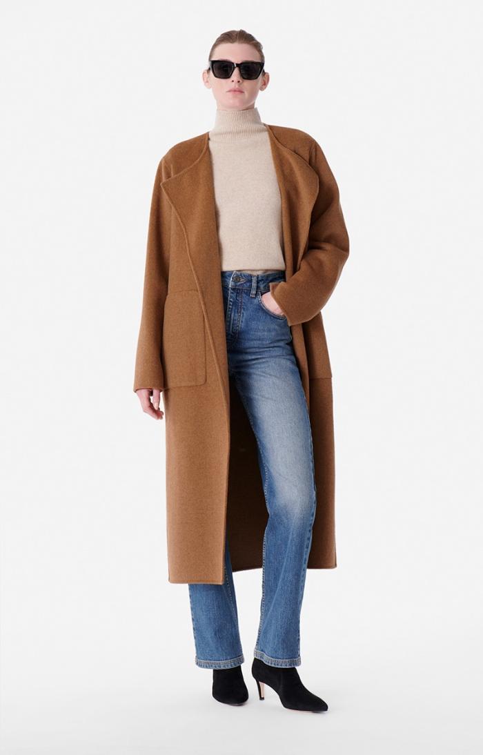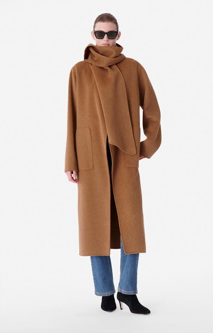 The chic Valeran coat is new for the Autumn/Winter 2023 season at Vanessa Bruno. Made in a wool blend, this design, with its bathrobe cut, is distinguished by its removable scarf, which allows you to change your look according to your desires. Original and elegant.