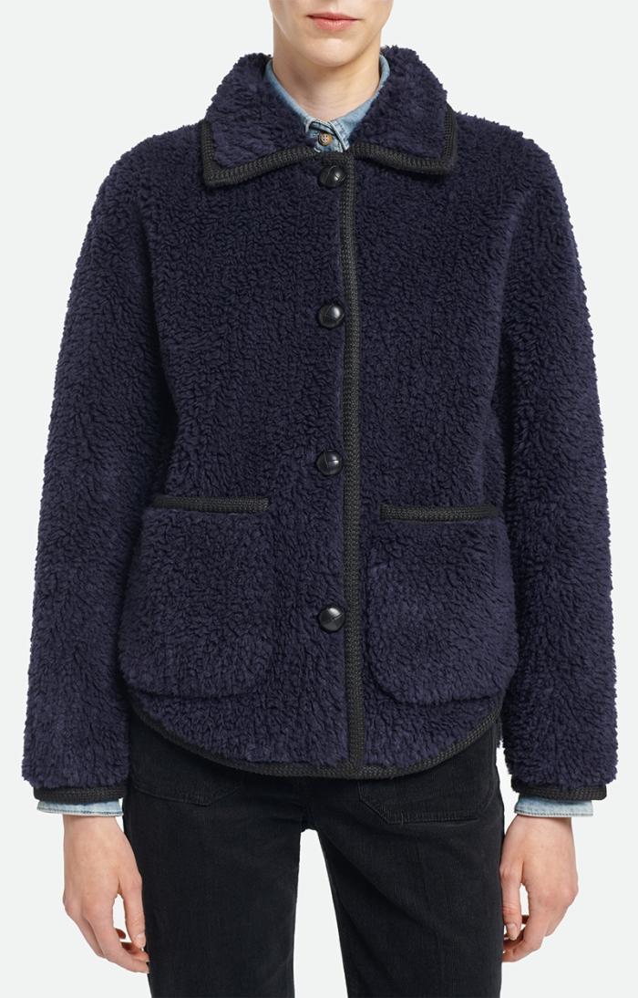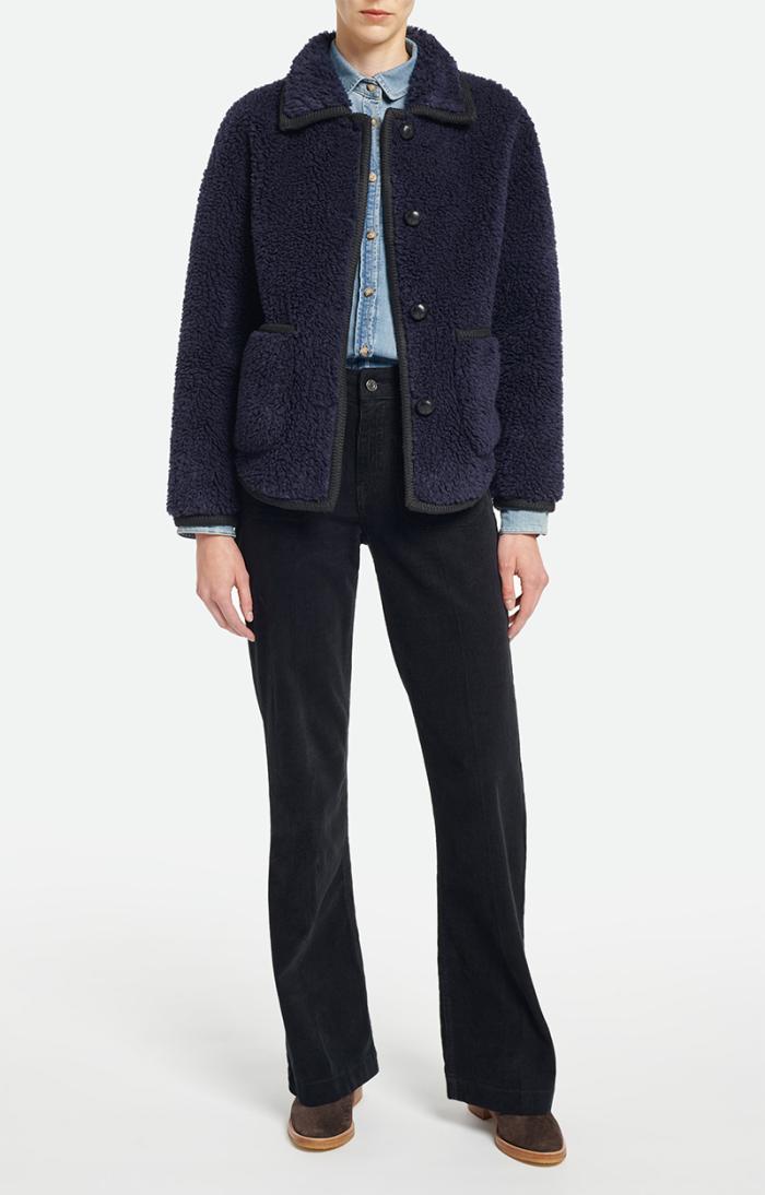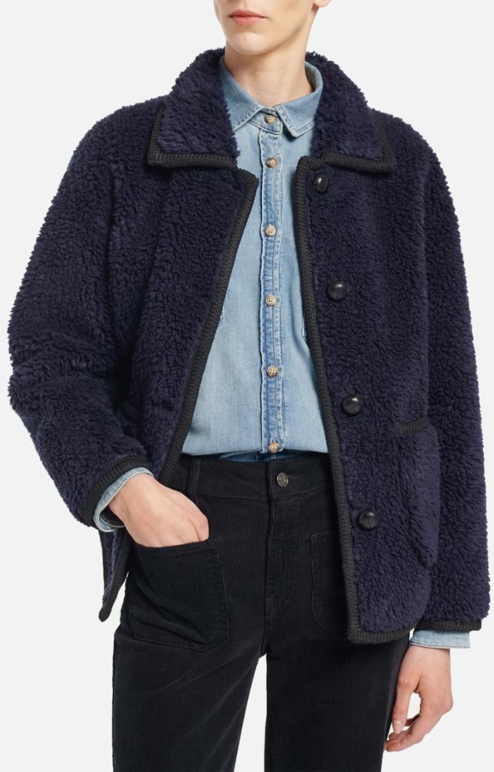 With a cool style, the warm Vandita coat is a faux skin woollen jacket from the Vanessa Bruno Autumn/Winter 2022 collection. This characterful piece has a boxy shape and stands out with its leather-covered button fastening on the front as well as its braided trim. A sporty and urban essential, to be worn with the Victor pants or with a simple pair of jeans.