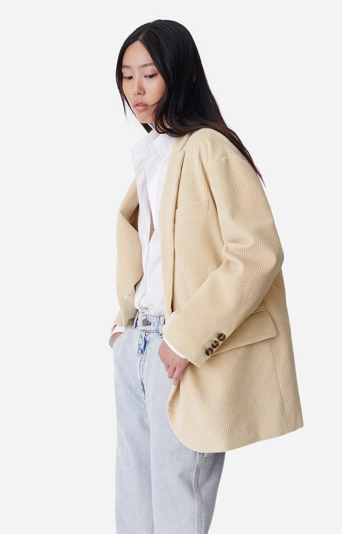 With an oversized cut, the Virginia jacket has an androgynous design and is made in corduroy with a light drape. A new versatile essential to wear with both dresses and jeans.