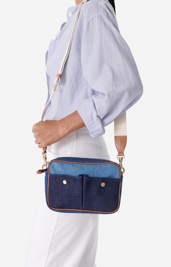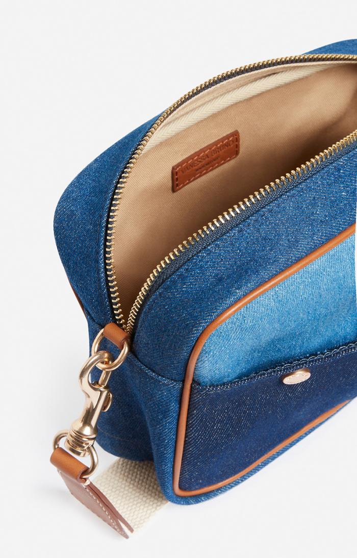 This chic little camera bag is taken from previous Vanessa Bruno collections. Made in a denim cotton canvas and smooth leather, this compact design features multiple pockets, making it the perfect accessory for women on the go. With its wide, detachable shoulder strap, it’s the new bag that’s both functional and elegant.