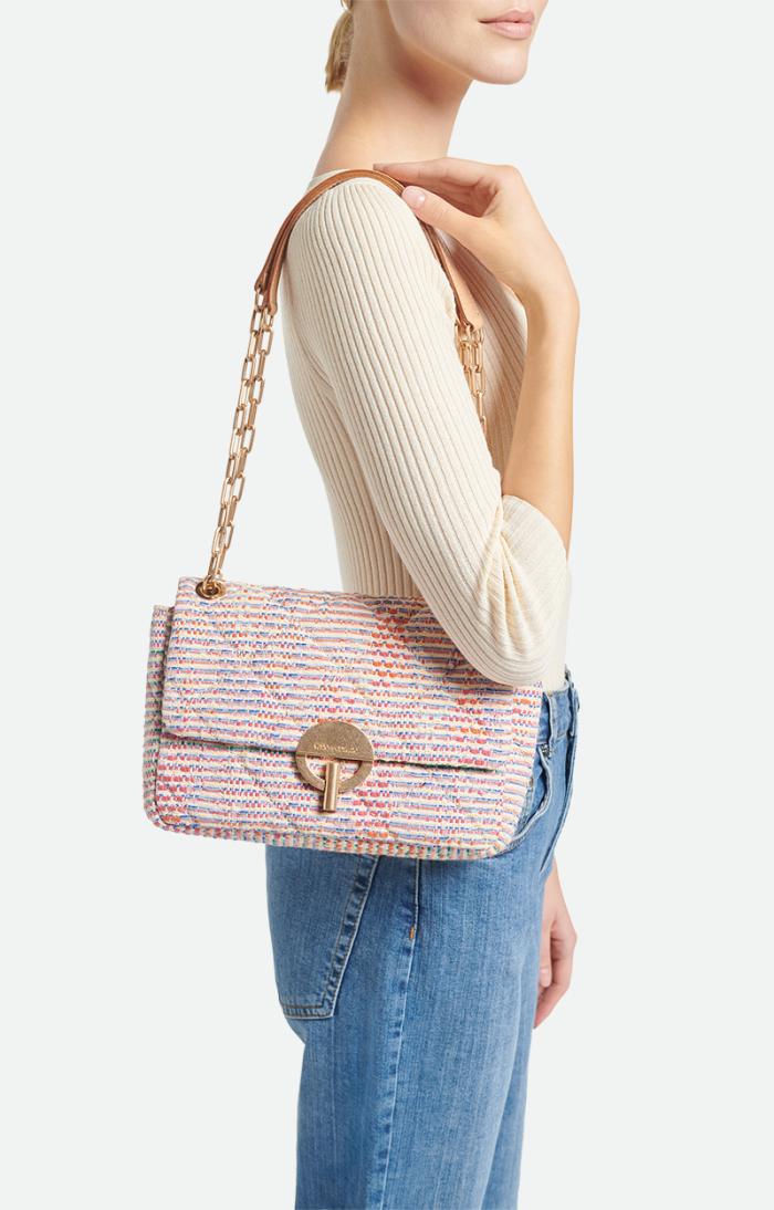 A great classic from the brand since its launch in 2017, the Moon bag has been redesigned once again for the Spring/Summer 2023 season. Made in a cotton blend, this colourful design features the brand’s iconic clasp and the usual chain strap.