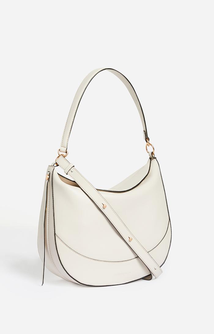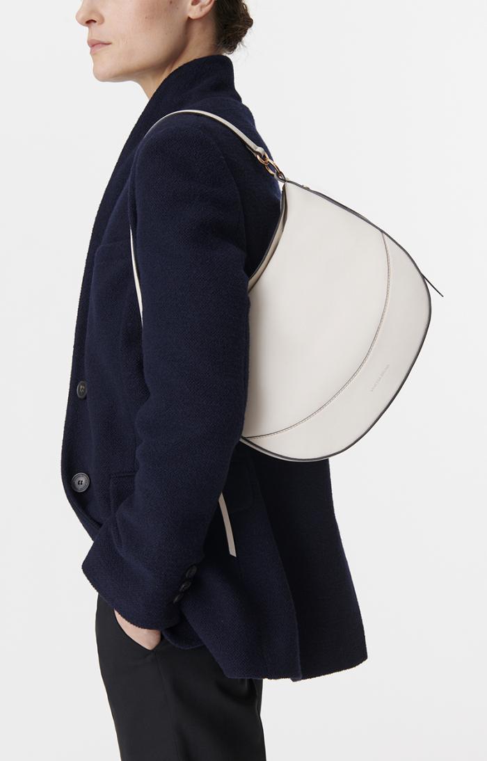 Smooth leather half-moon bag. Carried by hand, cross-body or on the shoulder.