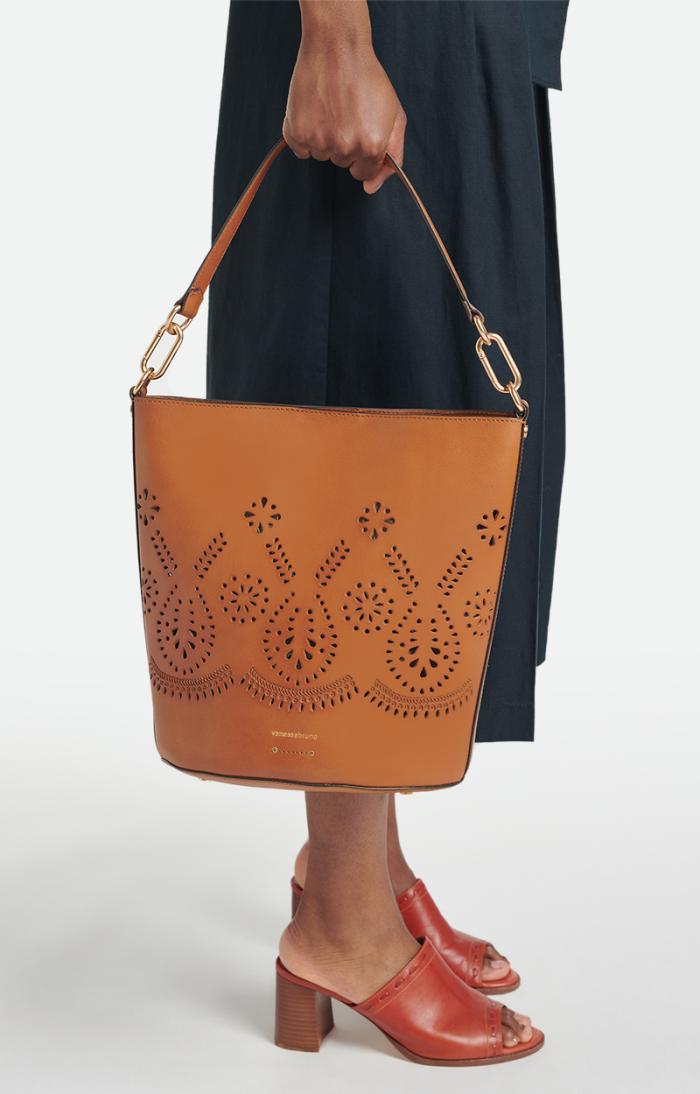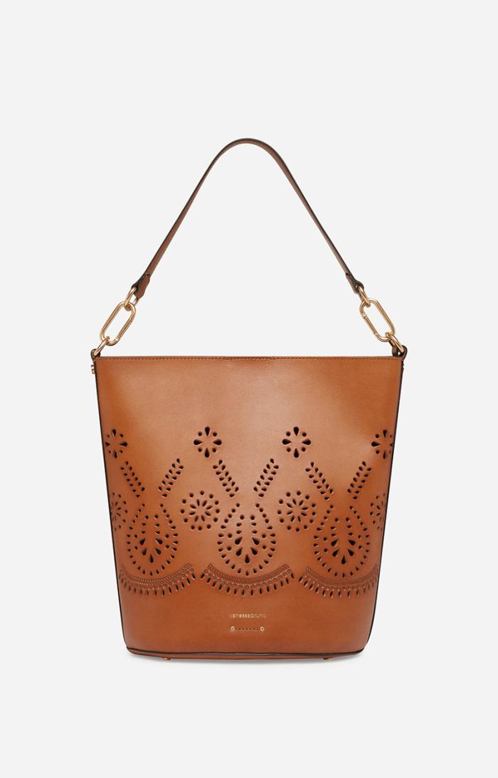 A Vanessa Bruno Bohemian classic, the Holly bucket bag combines functionality and elegance. Made in smooth leather, this version with a sleek shape has a handle. A true classic, versatile, effortlessly chic, revisited this season in an openwork design, which adds to its charm.
