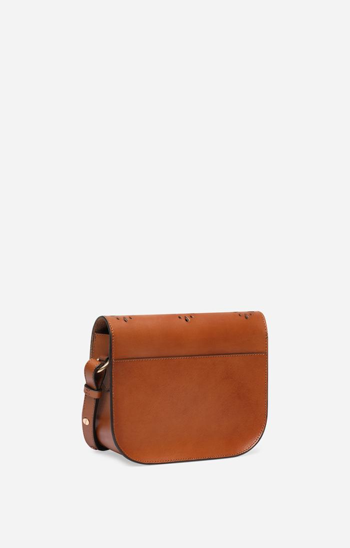 An adjustable smooth leather shoulder strap.