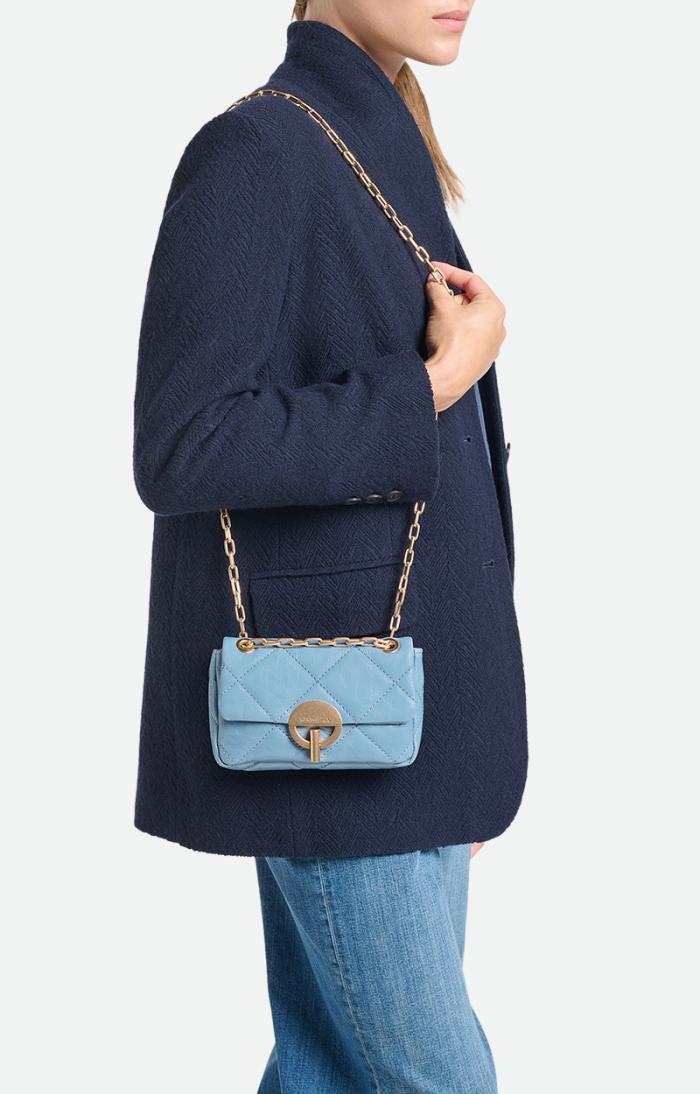 An iconic Vanessa Bruno bag, the Nano Moon has been once again revisited, this season in crinkle-effect leather. Featuring iconic quilting, this small handbag with round clasp and chain shoulder strap is the chic and versatile XXS essential that will accompany you wherever you go.