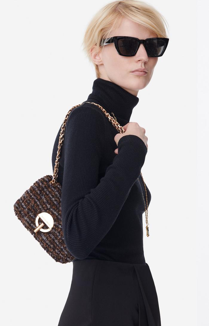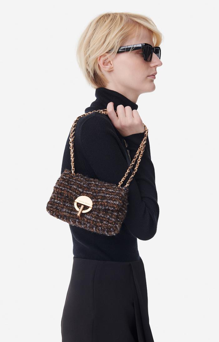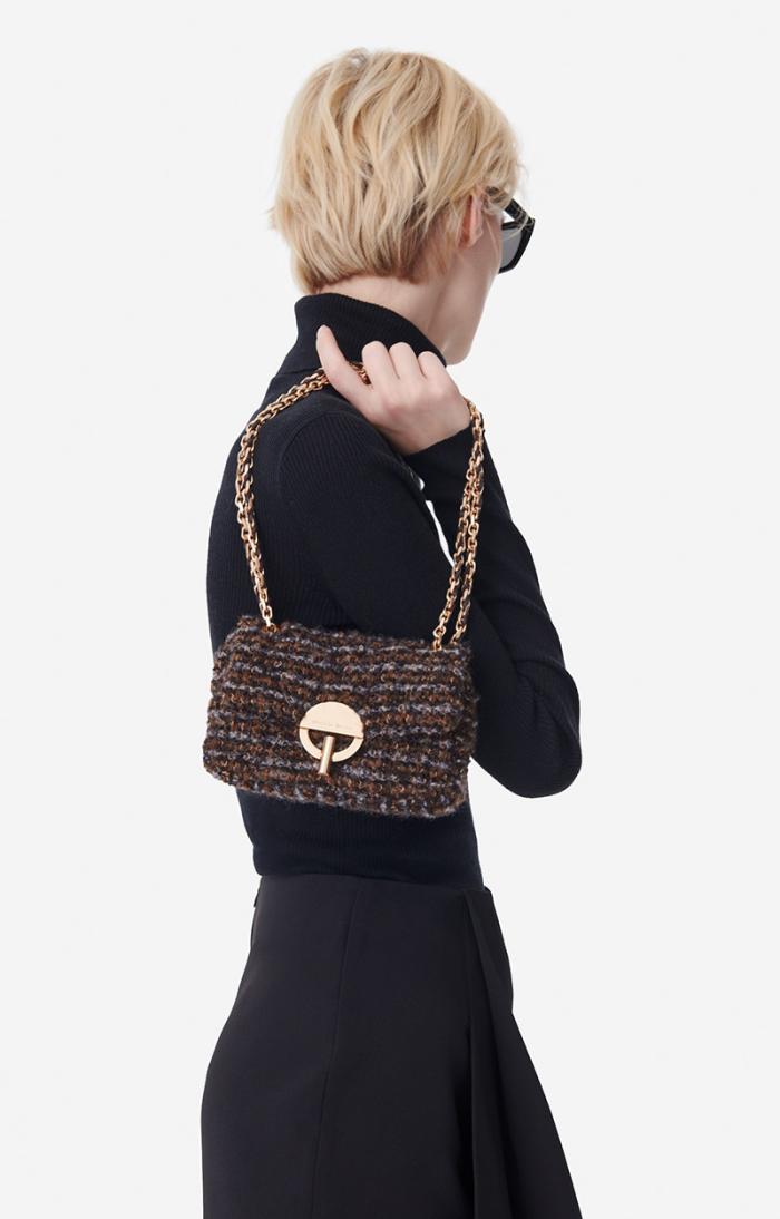 Well-known to Vanessa Bruno fans, the Nano Moon bag has been redesigned for the Autumn/Winter 2023 season. Made in tweed, this more autumnal version is of course equipped with the iconic clasp and usual chain strap.