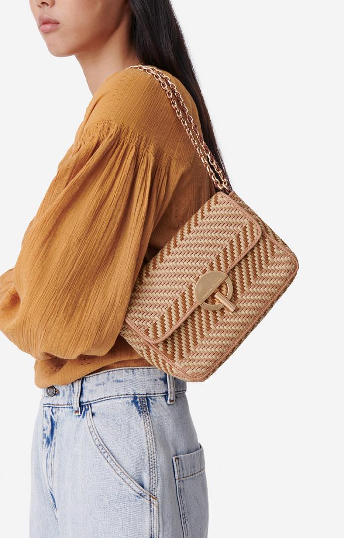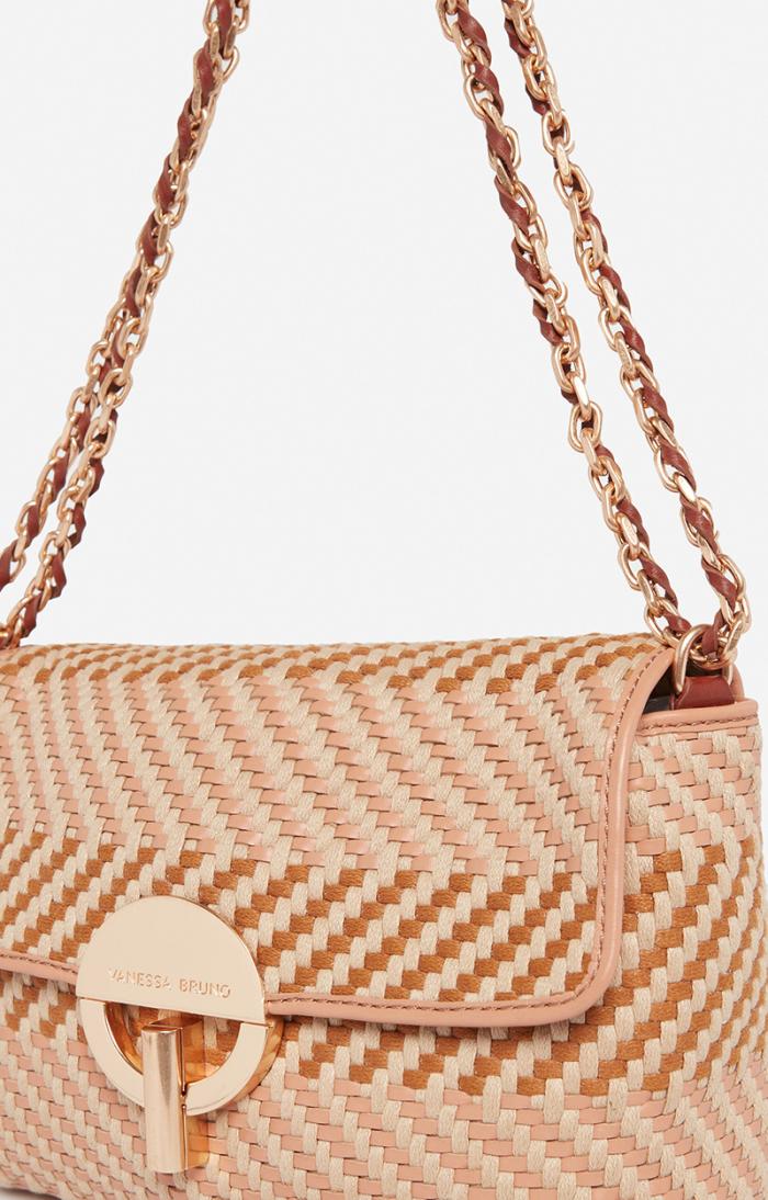 Well-known to Vanessa Bruno fans, the Moon bag has been redesigned for the Autumn/Winter 2023 season. Made in woven leather and cotton, this chic, sleek version is of course equipped with the iconic clasp and usual chain strap.