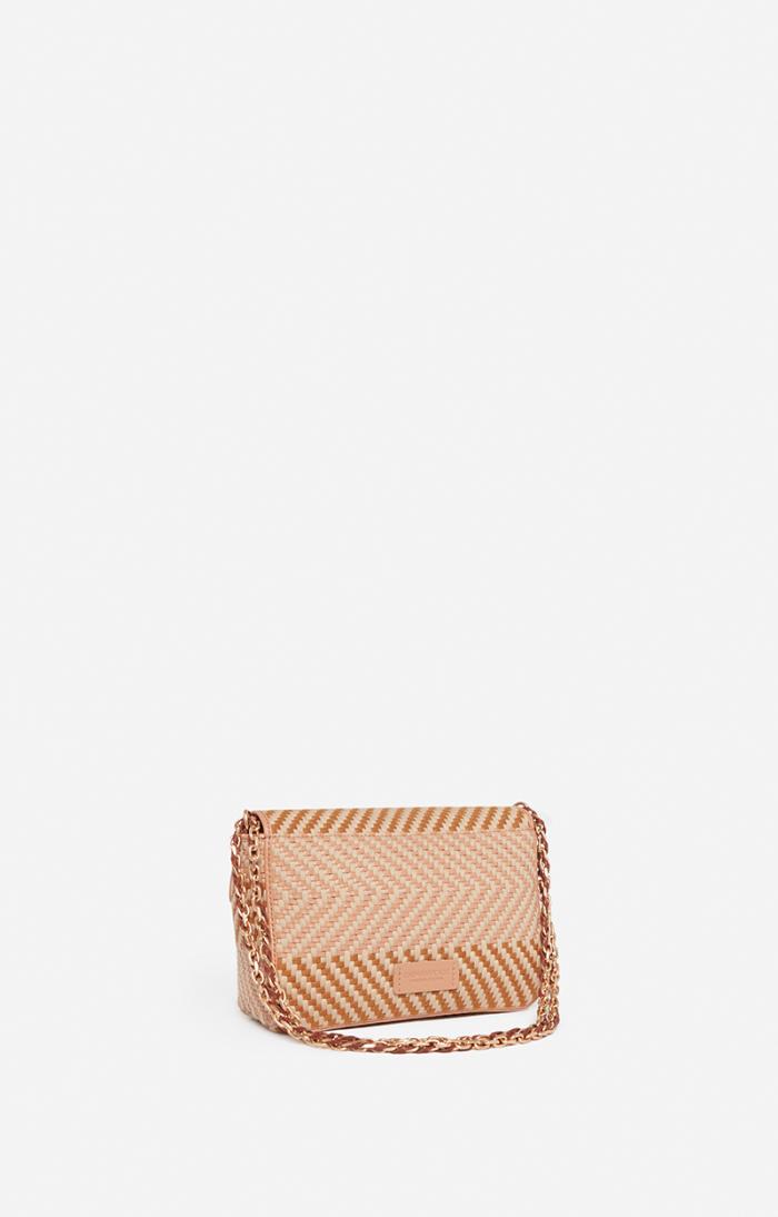 Small Moon bag in woven leather and cotton.