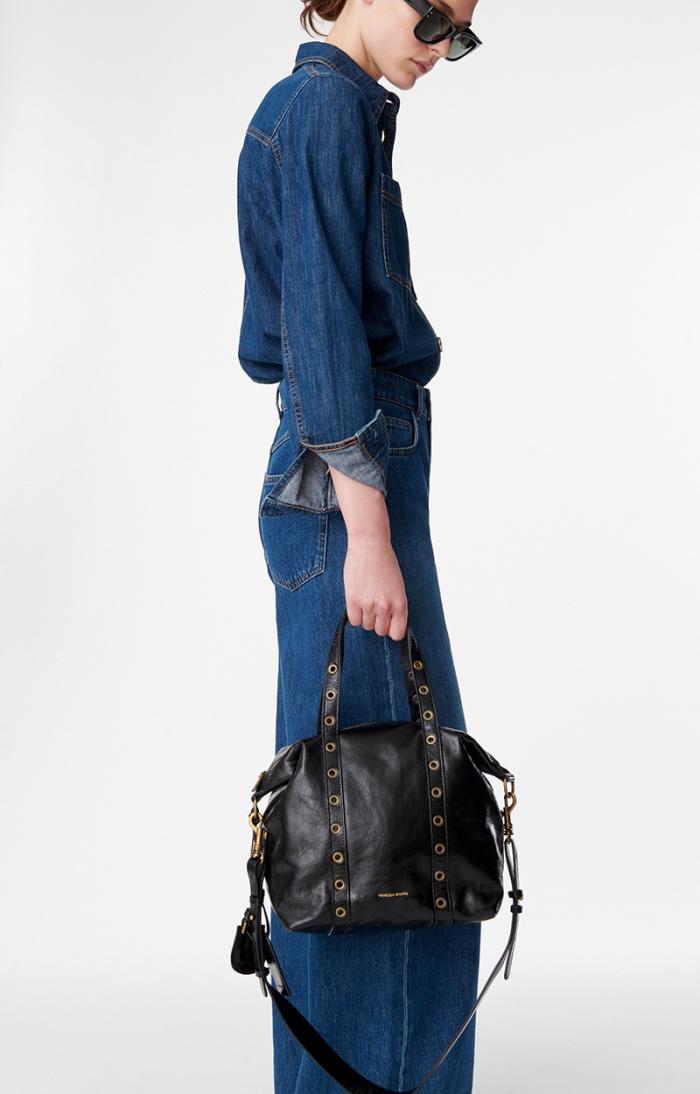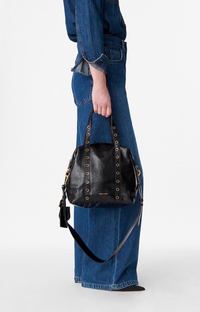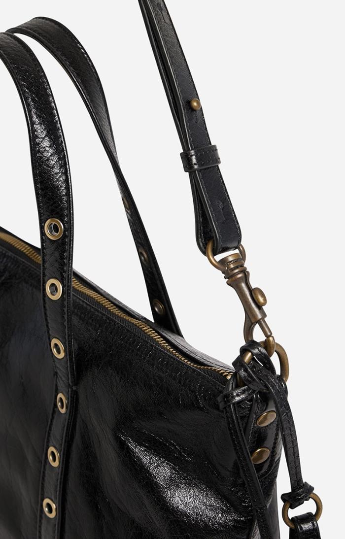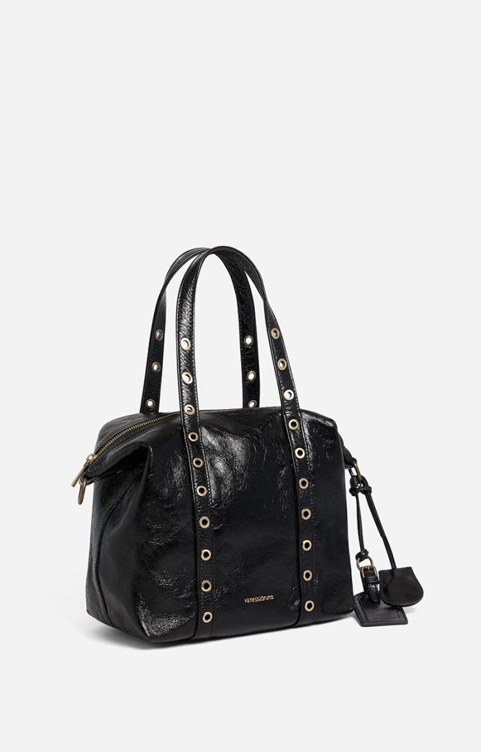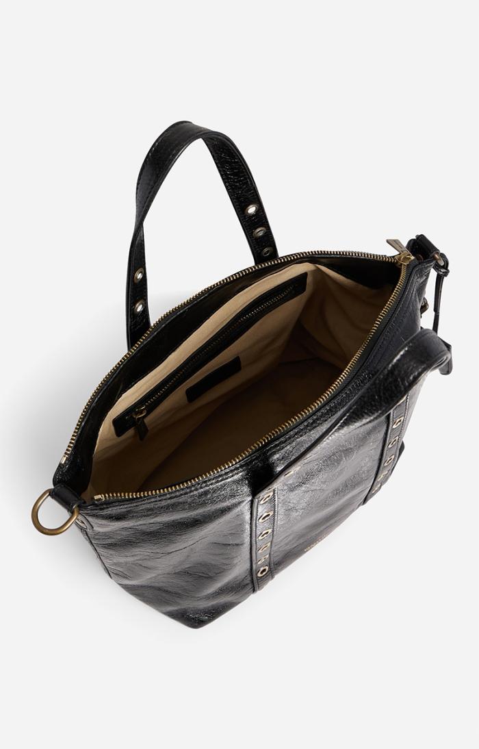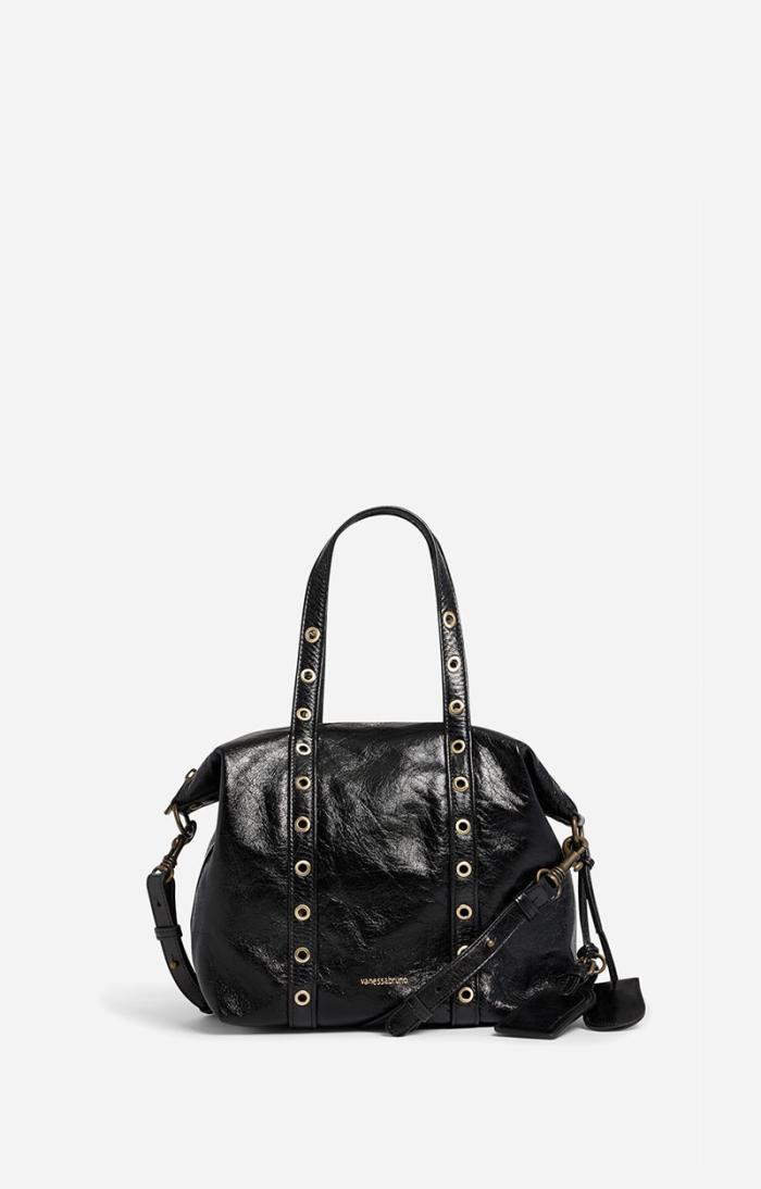 Small crinkled leather Zippy cabas tote bag with two handles for carrying by hand and one removable for carrying on the shoulder. It has three inside pockets including one zipped inside and a removable label holder. Label of natural vegetal leather inside the bag hot stamped with “Le Cabas Vanessa Bruno made in Italy”.