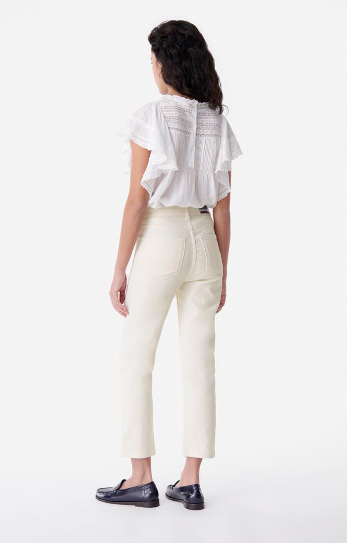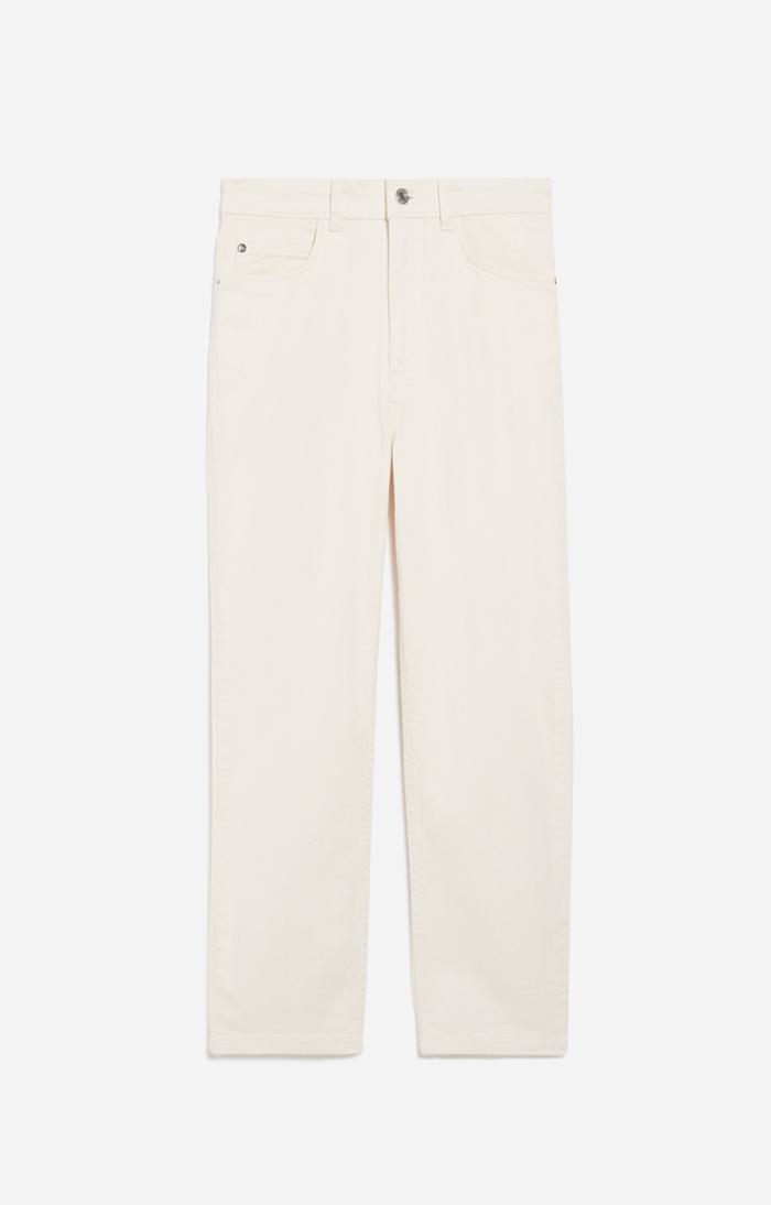 Cool, modern jeans for the season, cropped, in white. Play with masculine/feminine and casual/elegant contrasts by wearing it with more formal shoes.