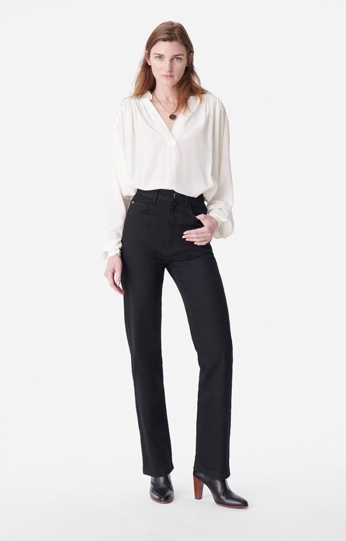 The house’s cool, timeless jeans. These jeans are high-waisted and straight-cut. Play with the contrasts of feminine and masculine, or casual and sophisticated, by wearing them with more formal shoes.