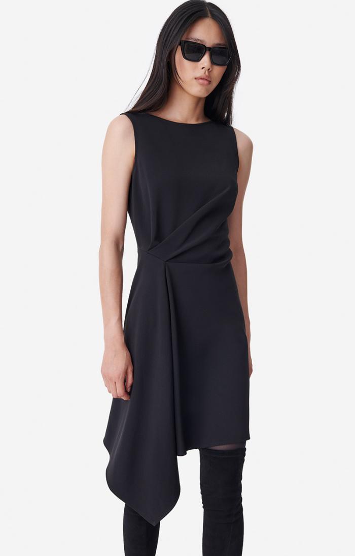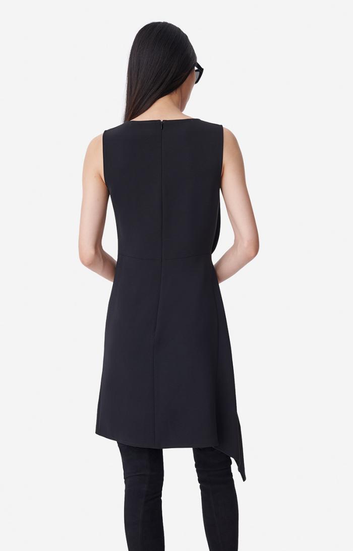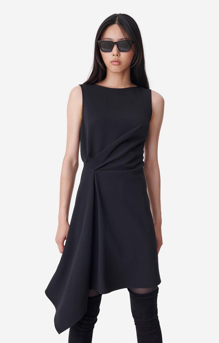 The Babylone dress is short and asymmetrical. This piece stands out for its faux wrap-around style and its pleat at the underskirt. Sensual and elegant, this dress is an essential to wear day or night as you wish.
