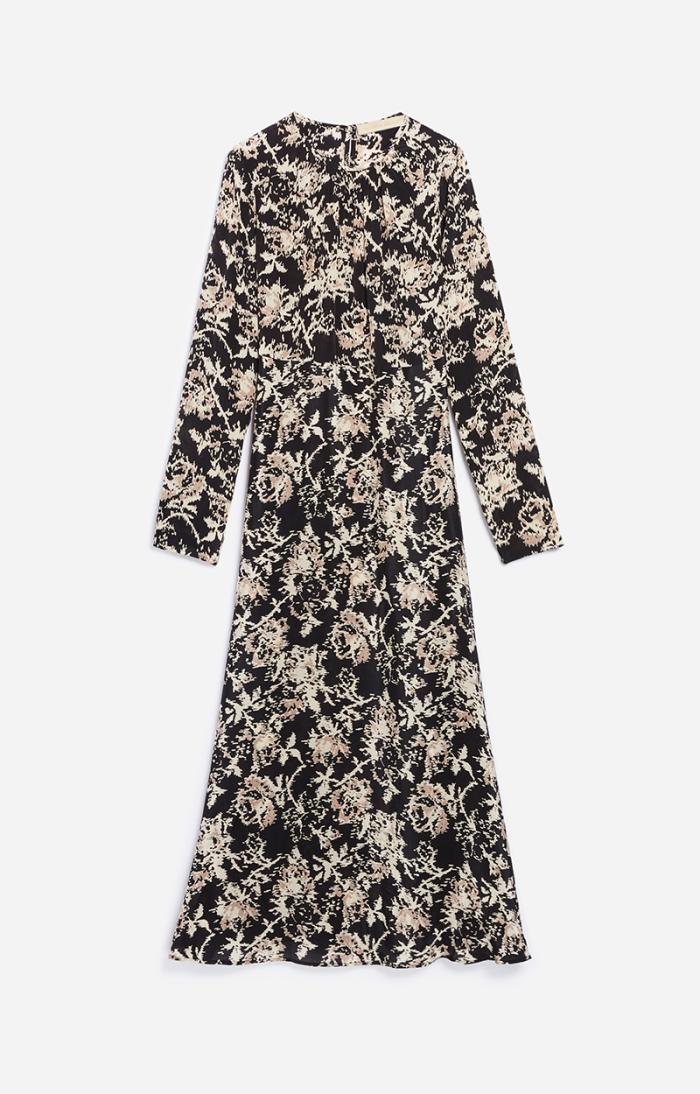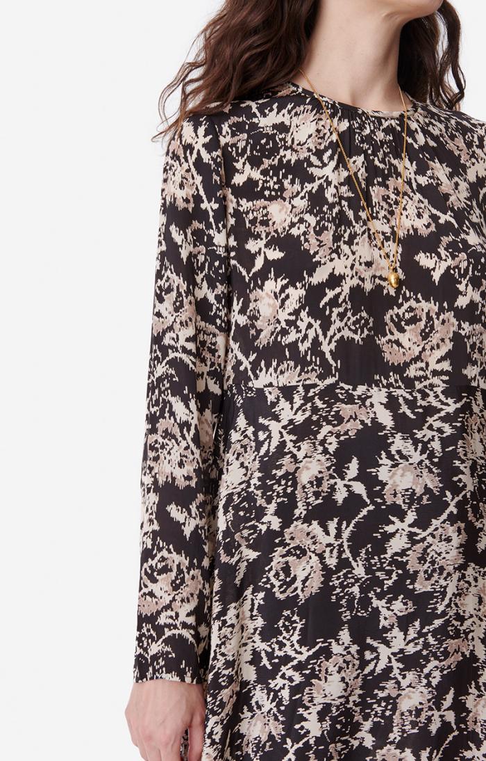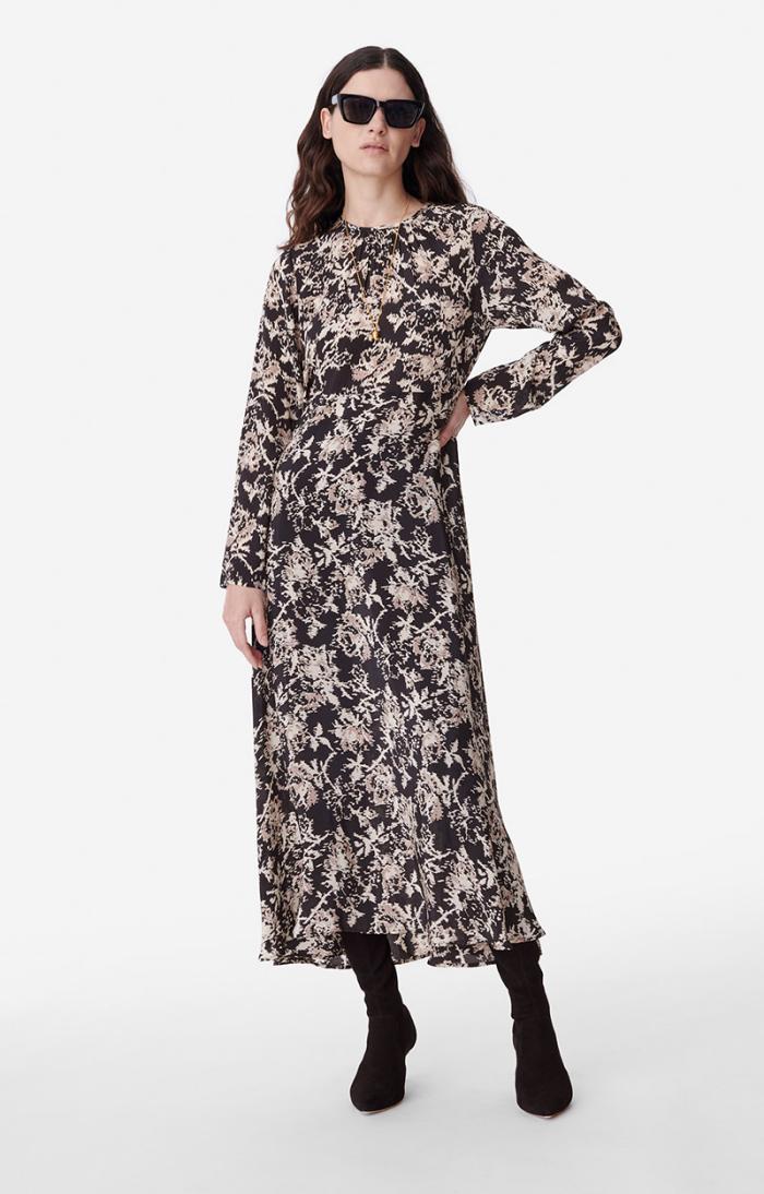 Characteristic of the brand’s romantic style, the Bethany dress stands out for its fluid line. Made in a lightweight viscose, this piece has a subtle ruffled neckline and is enhanced by its floral print as well as several ruffles at the skirt, which add to its sensual look. An essential.
