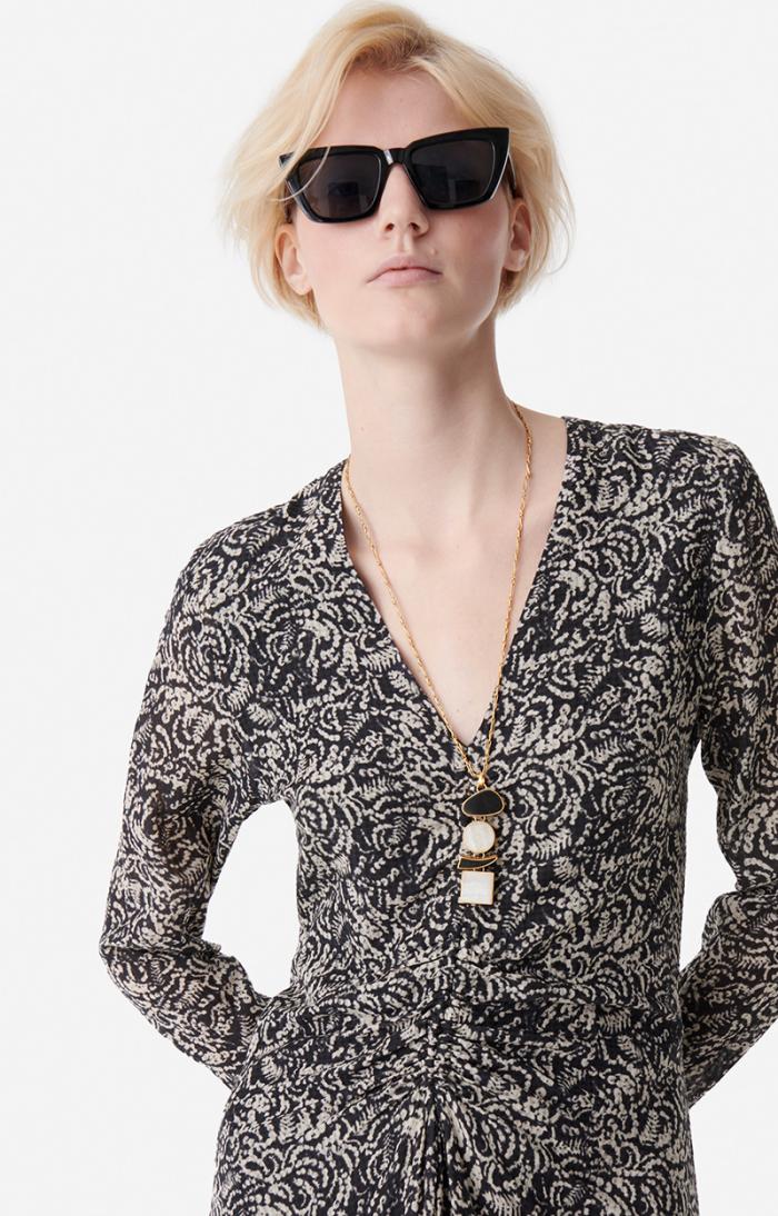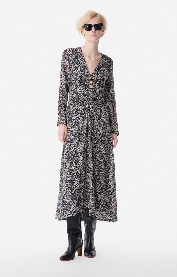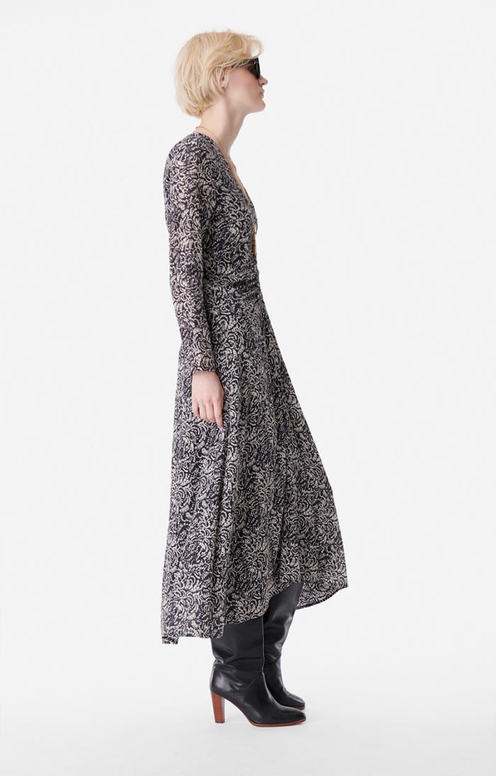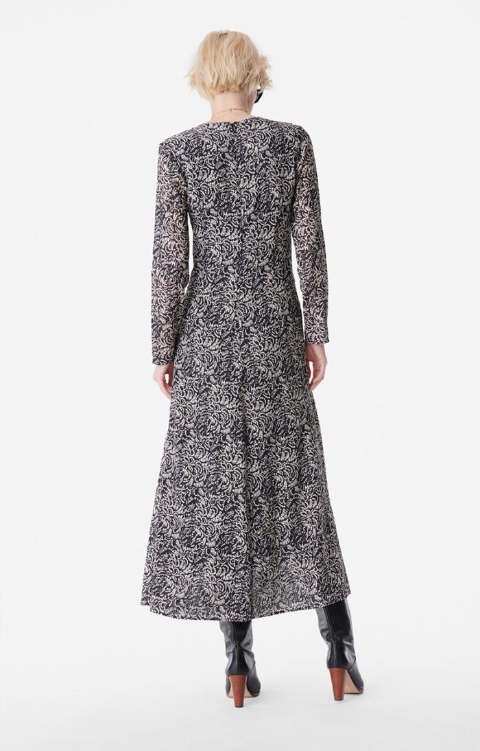 Fluid and light, with a flared line, this dress stands out for its long sleeves in slightly transparent voile. Made in silk blend, the sensual Biba dress can be worn with clogs for a modern, bohemian look.