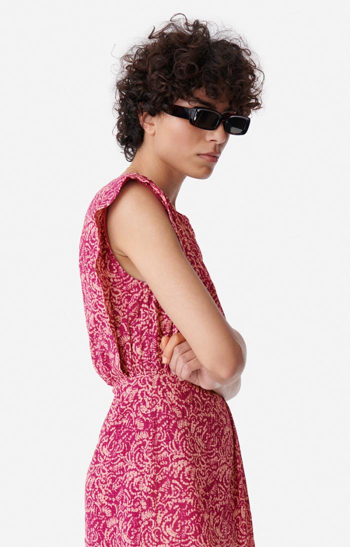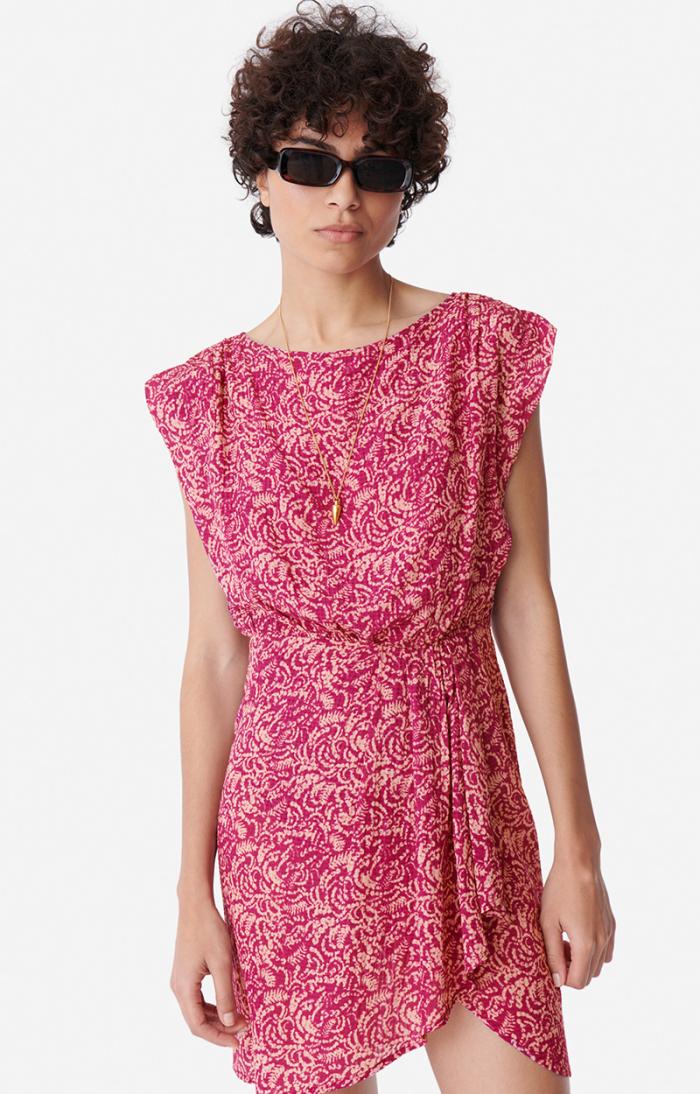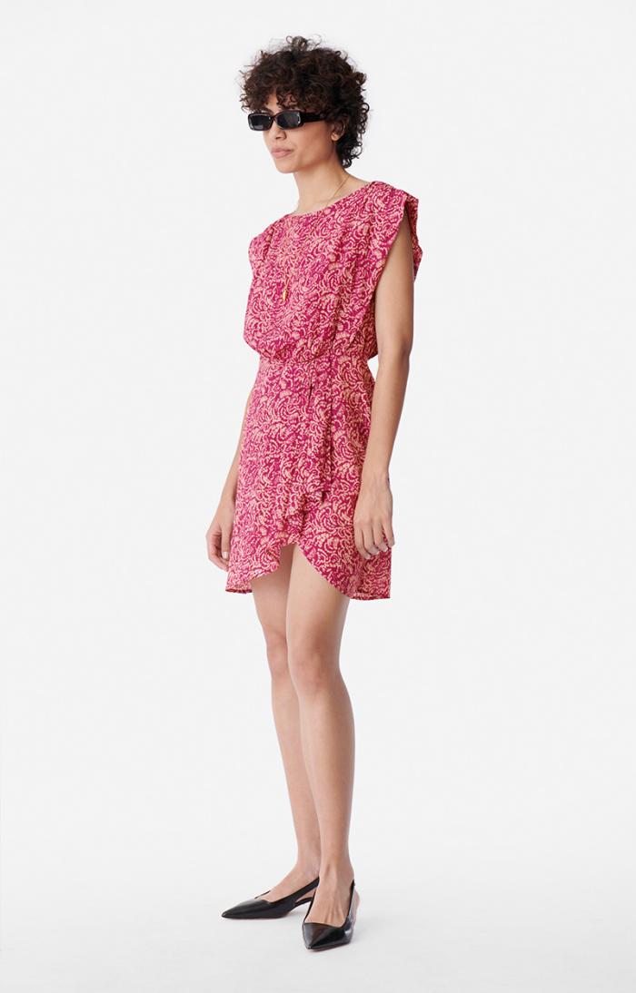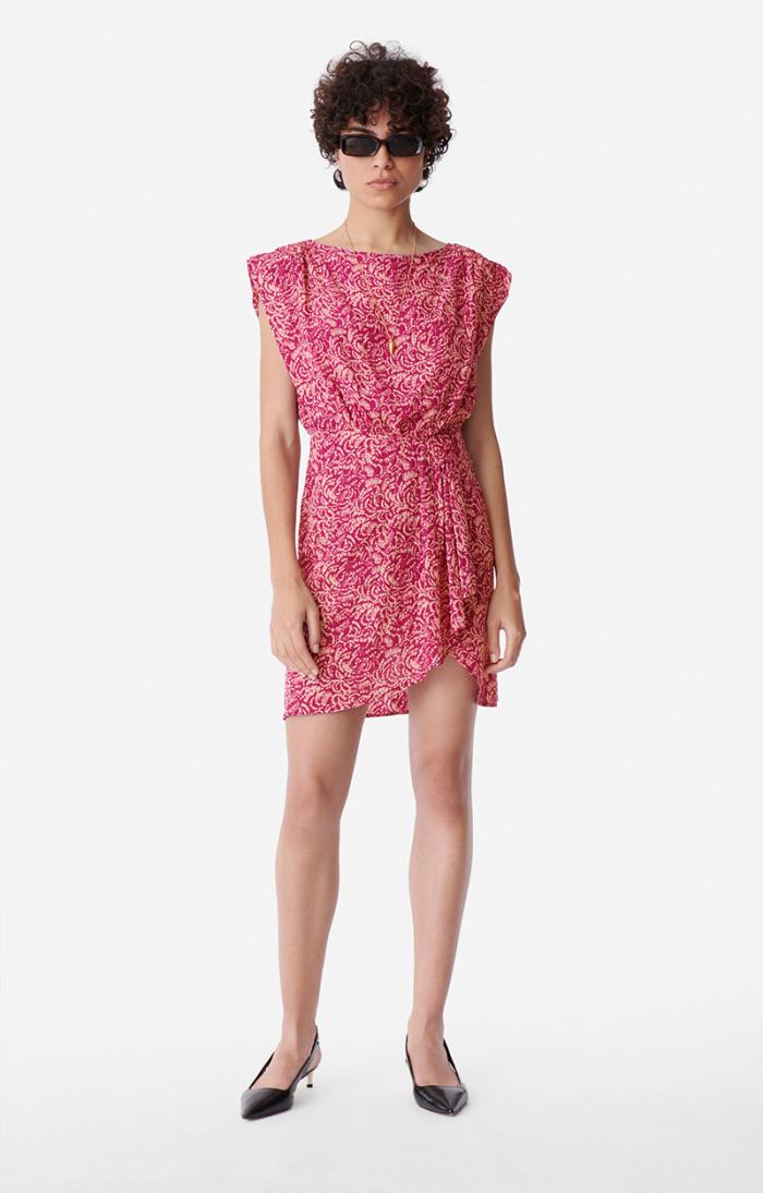 The chic casual dress perfect for summer. Feminine, it is marked at the waist by subtle gathering. Mini and light, this piece is enhanced by a wallet effect on the front.