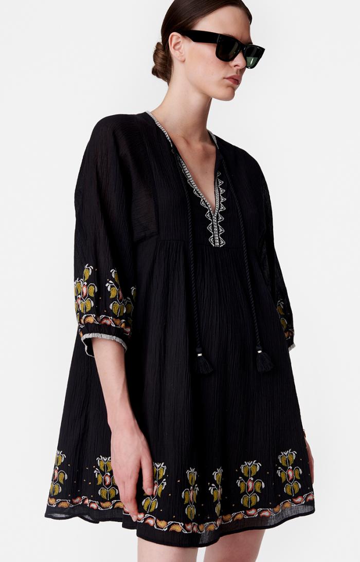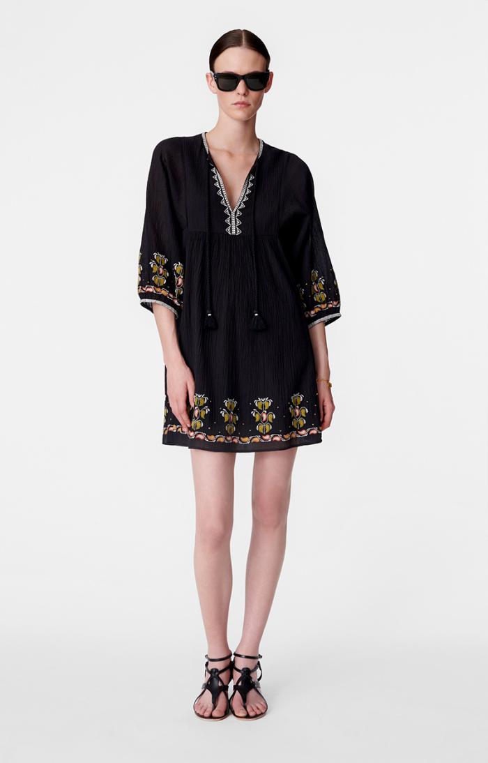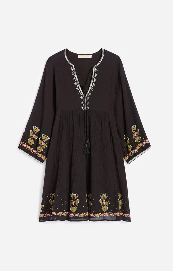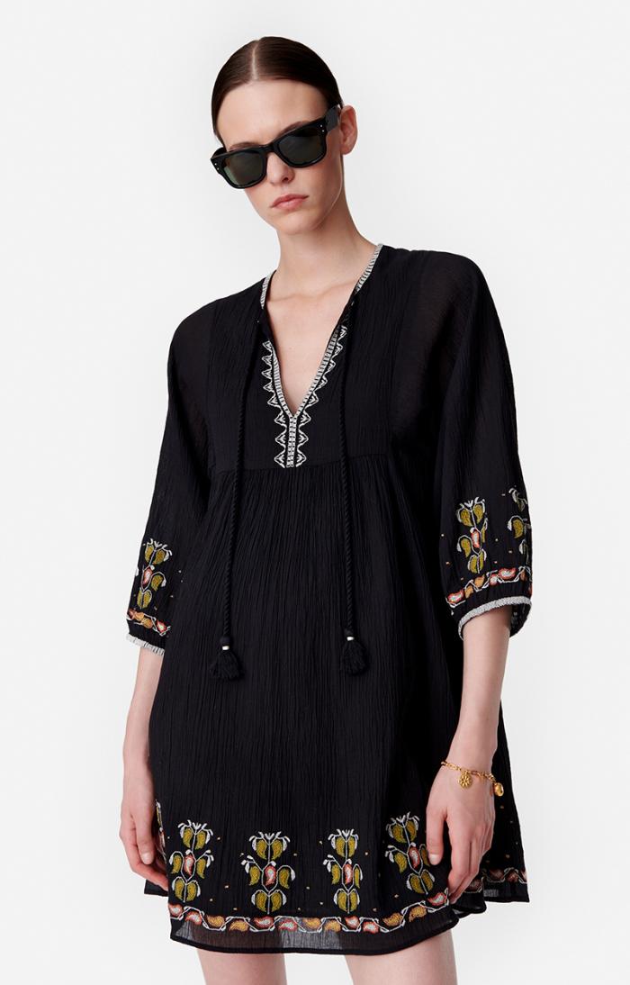In a Bohemian style inspired by the ’70s, the Takis dress is perfectly in keeping with the brand’s style. Made in cotton, this flowing piece is distinguished by its cross-stitch embroidery on the collar and down the sleeves.