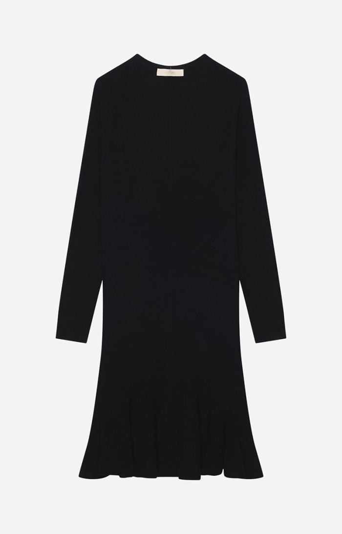 Both elegant and minimalist, the Violetta dress is taken from the Vanessa Bruno Autumn/Winter 2022. Made from a wool/cotton blend, this subtly flared piece features a deep V-neckline, fine ribs and a ruffled hem.