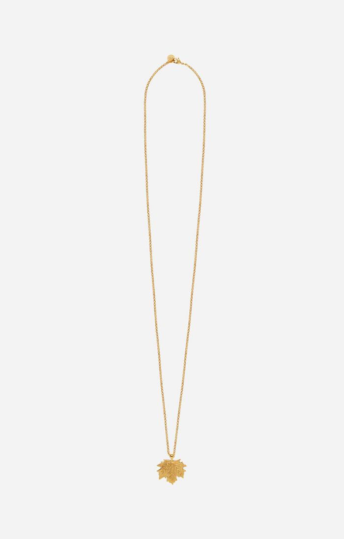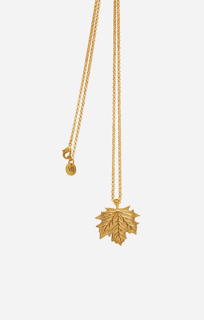 A long necklace with a lucky charm pendant in an autumn theme, to be worn alone or layered.