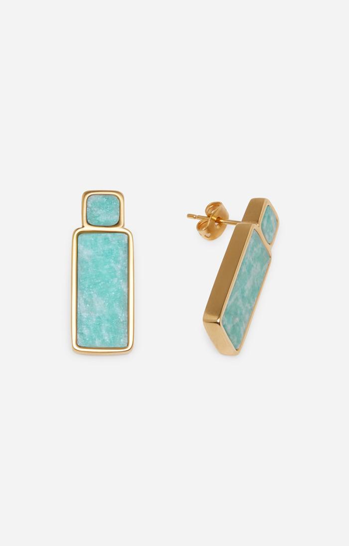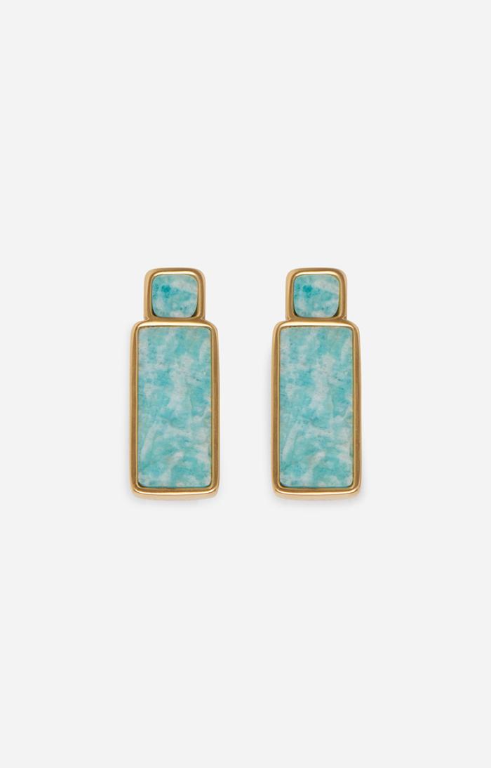 Taken from the house’s Spring/Summer 2023 collection, these gold-coloured brass earrings feature amazonite inserts. With their graphic shape, this understated yet elegant piece is perfect for adding a colourful and chic touch to any look.