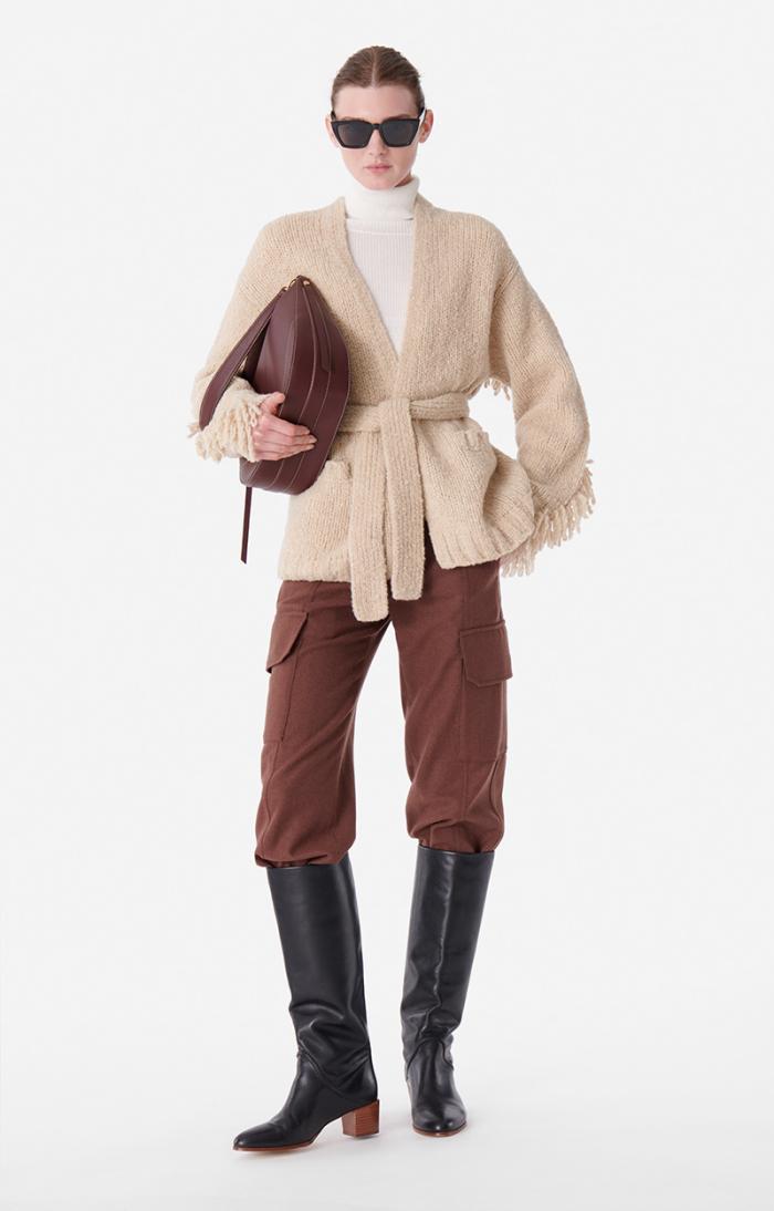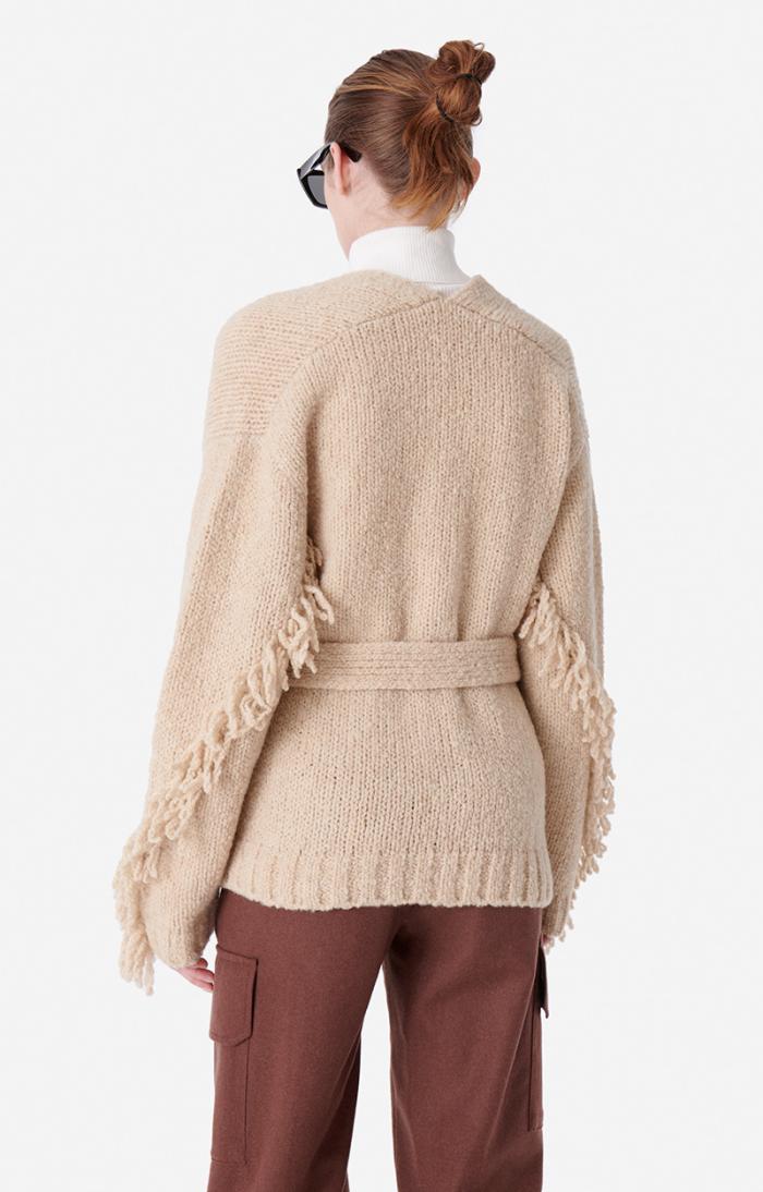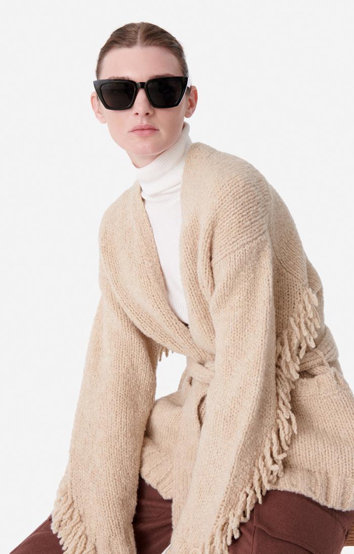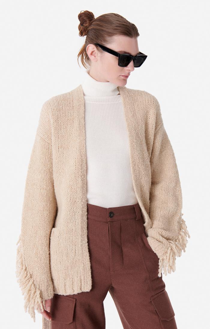 Made from merino wool for a cosy, soft feel, the Blondine cardigan is both chic and casual. Cool with its fringed detailing on the sleeves, wear it with jeans and high boots to bring out your cowboy look.