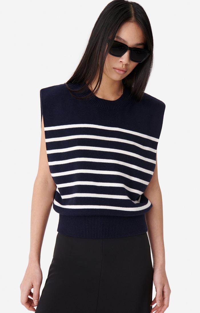 Made from a blend of cotton and merino wool, this tank-top jumper is as cool as it is chic. Its silhouette is refined by its structured shoulders, blouson volume, ribbed maser waistband and deep seams. Wear with oversized shirts.