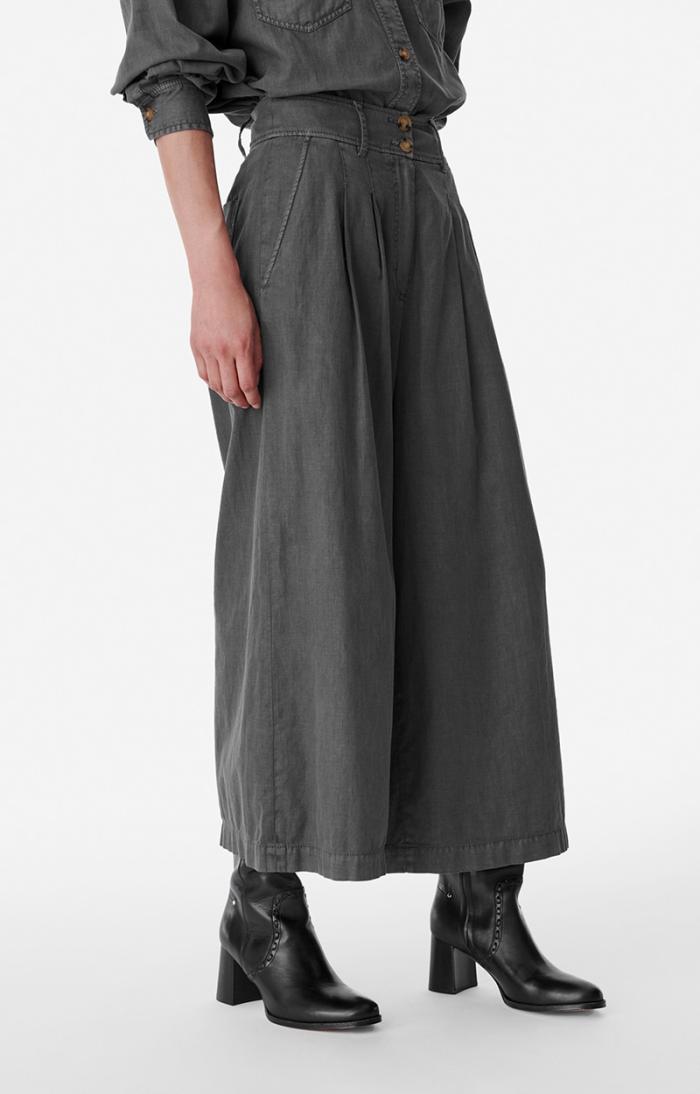 Culotte-style trousers.