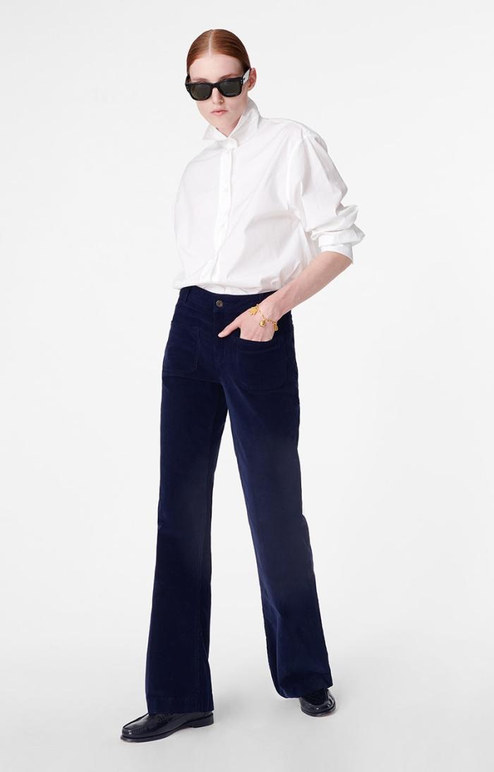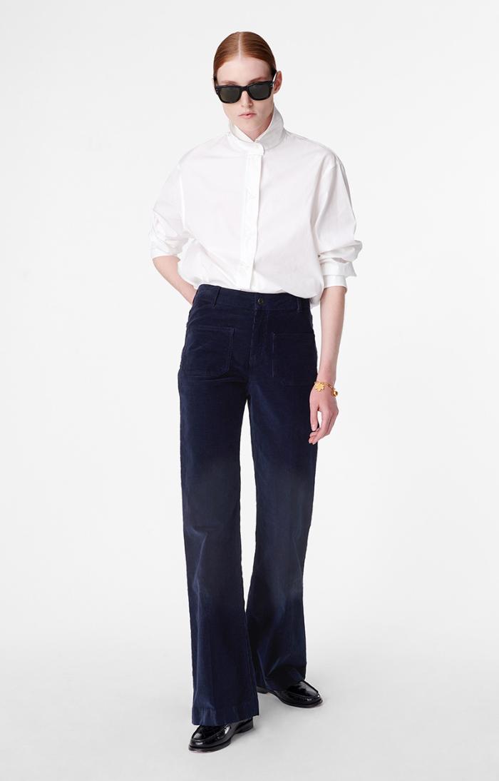 A classic from Vanessa Bruno, the Dompay trousers have been redesigned this season in a corduroy that is both chic and delicate. They have the same high waist, same flare cut, same timeless style: this revisited essential can be worn with a pair of trainers as well as your favourite ankle boots.