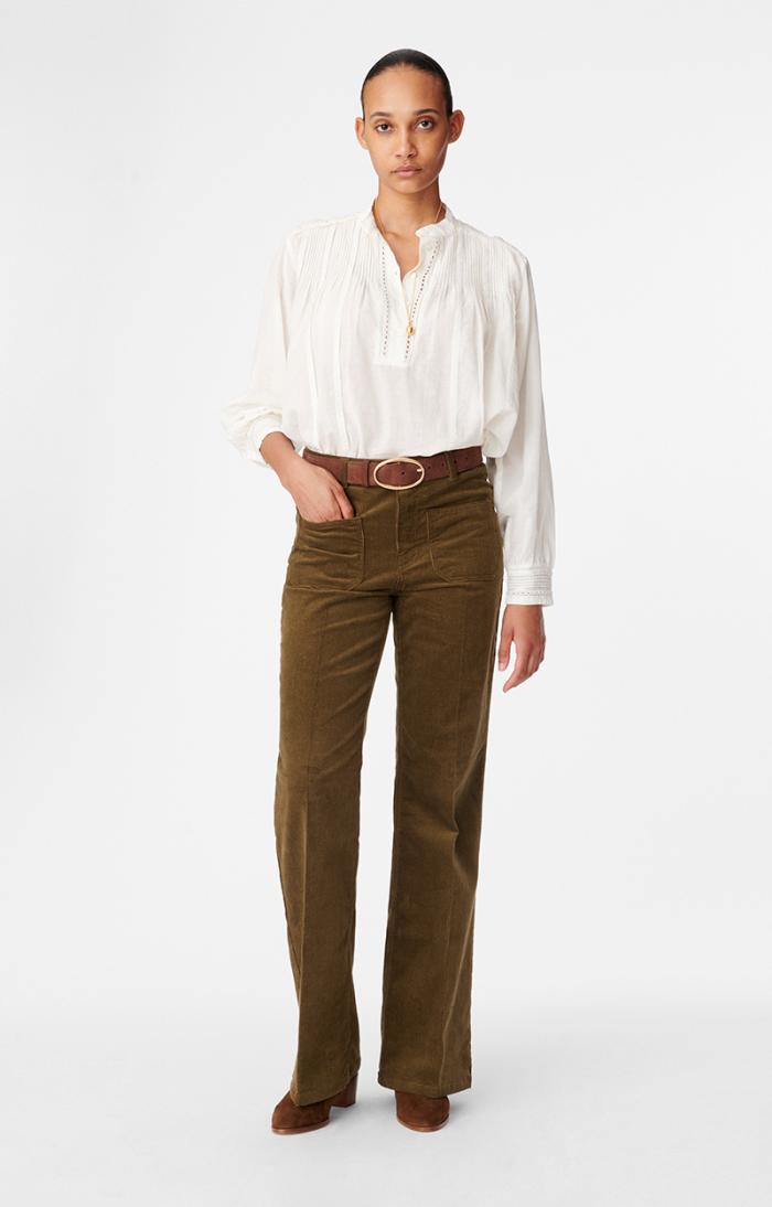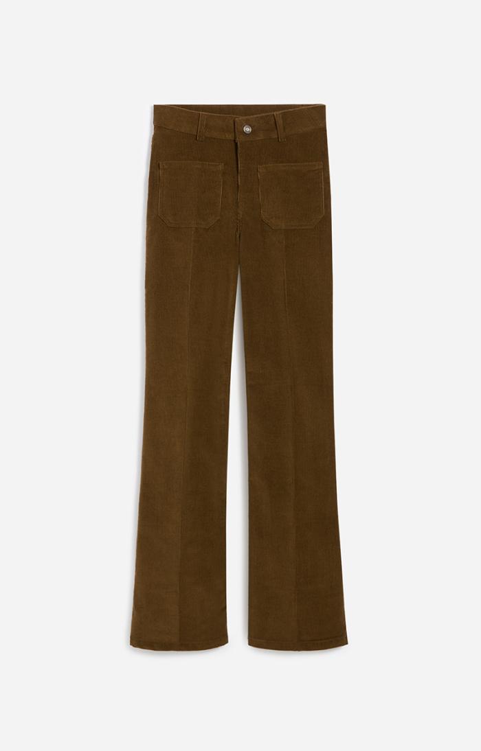 A classic from Vanessa Bruno, the Dompay trousers have been redesigned this season in a corduroy that is both chic and delicate. They have the same high waist, same flare cut, same timeless style: this revisited essential can be worn with a pair of trainers as well as your favourite ankle boots.