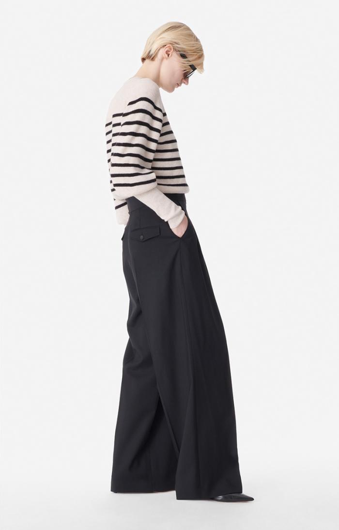A high waist, a wide cut, large darts and a unique shape: the Ticiano trousers are the star of the Spring/Summer 2023 season. Made in wool, these oversized boyish trousers stand out for their relaxed and easy style. Worn with a pair of ankle boots or trainers, with a lingerie-style top or a simple white T-shirt, they are the must-have of the moment.