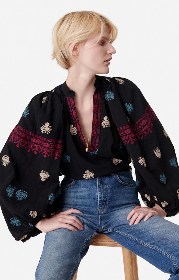 New for the Autumn/Winter 2023 season, Vanessa Bruno has created this version of its iconic Vanessa dress as a top. With its gathers, this piece stands out for its curved lines and puffed sleeves, guaranteed to add a unique touch to your wardrobe. This version stands out for its jacquard details.
